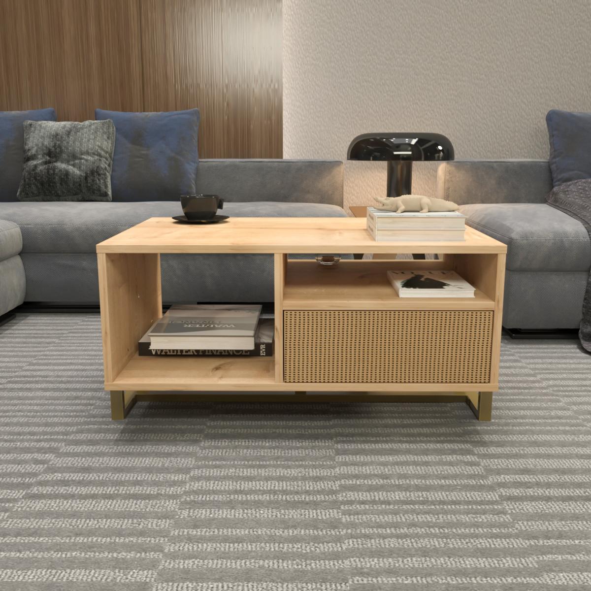 Crafted from 18mm thick quality melamine-coated particle board and adorned with first-class PVC edge banding tape, the coffee table emphasizes durability and quality. The metal legs are coated with scratch and impact-resistant industrial static paint, ensuring longevity. Manufactured using eco-friendly and health-friendly TSE certified materials, the table is delivered disassembled in its original packaging. Designed for easy customer assembly using simple household tools like a power drill, the package includes assembly instructions and installation hardware, complete with numbered parts featuring stickers for a quick and error-free installation process.