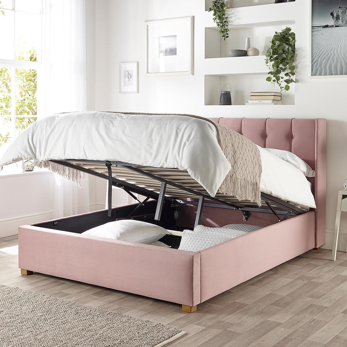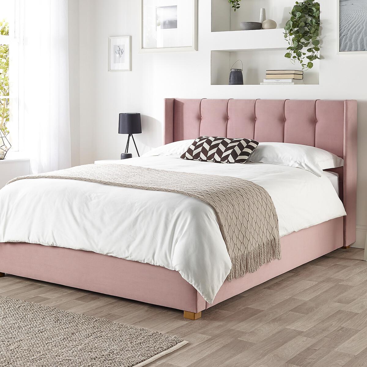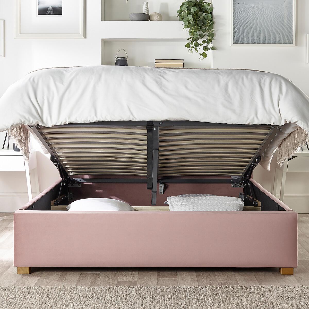 Our Catherine Lansfield Soho Ottoman Bed is a stylish storage bed manufactured in the UK and upholstered in a sumptuous velvet. The hand upholstered tufted headboard features deep padding and a gorgeous, winged headboard with a vertical buttoned design for an extra touch of luxury. A lift-away mechanism powered by strong gas pistons reveal ample storage space that can be easily accessed with minimal effort, perfect for storing extra bedding and accessories. Quality sprung slats form a base designed to improve comfort and mattress lifespan. Hand-turned curving wood feet create an elegant finish. Product details:• Ottoman storage bed• Hand upholstered headboard with stylish vertical buttoned design and winged side panels• Upholstered in a luxurious velvet fabric with a soft lustre and plush texture• End-lift mechanism for convenient access• Large storage area with fabric dust protection sheet base• Durable gas pistons ensure the storage area remains securely open for hands-free use• Solid hand-turned hardwood feet• Sprung slatted base• Foam fillings• Made to order and expertly hand finished right here in the UK • Assembly required (2 person recommended)• Mattress not included• 12 month manufacturers warranty• Care advice:Wipe clean with a soft cloth Composition • Upholstery - Plush Velvet (100% polyester)• Fillings - Foam • Frame - Chipboard, Plywood, MDF, Steel. This product will be dispatched by one of our trusted suppliers. You’ll be contacted by their selected courier about your delivery. Please note this item will be delivered to your doorstep. Please note that this item cannot be delivered to the Offshore Islands, Northern Ireland or the Republic of Ireland. Product Dimensions Single • Total Dimensions - H112cm x W100cm x L209cm• Storage Area Dimensions - W94 cm x L193 cm x H26 cm • Suitable for use with standard single mattresses (90cm x 190cm)Small Double • Total Dimensions - H112cm x W130cm x L209cm• Storage Area Dimensions - W122 cm x L193 cm x H26 cm • Suitable for use with standard small double mattresses (120cm x 190cm)Double • Total Dimensions - H112cm x W147cm x L209cm• Storage Area Dimensions - W141 cm x L193 cm x H26 cm • Suitable for use with standard double mattresses (135cm x 190cm)King• Total Dimensions - H112cm x W160cm x L219cm• Storage Area Dimensions - W154cm x L204 cm x H26 cm • Suitable for use with standard king mattresses (150cm x 200cm)Super King• Total Dimensions - H112cm x W190cm x L219cm• Storage Area Dimensions - W184 cm x L204 cm x H26 cm • Suitable for use with standard king mattresses (180cm x 200cm)Other dimensions• Headboard Height - 110 cm• Footboard Height: 30cm• Underbed Clearance: 5cm• Ottoman lift mechanism functions with a mattress with weight of up to 60 kg. Package DimensionsSingle:. Parcel 1 - 140cm x 113cm x 12cm, Weight: 12kg Parcel 2 - 212cm x 32cm x 19cm, Weight: 13kg Parcel 3 - 240cm x 180cm x 12, Weight: 18kg. Small Double:Parcel 1 - 140cm x 113cm x 12cm, Weight: 19kg Parcel 2 - 212cm x 32cm x 19cm, Weight: 17kg Parcel 3 - 240cm x 180cm x 12cm, Weight: 22kgDouble: Parcel 1 - 171cm x 113cm x 12cm, Weight: 22kg Parcel 2 - 212cm x 32cm x 19cm, Weight: 18kg Parcel 3 - 240cm x 180cm x 12cm, Weight: 23kgKing:. Parcel 1 - 171cm x 113cm x 12cm, Weight: 27kg Parcel 2 - 212cm x 32cm x 19cm, Weight: 22kg Parcel 3 - 240cm x 180cm x 12cm, Weight: 25kg Super King:Parcel 1 - 201cm x 113cm x 12cm, Weight: 30kg Parcel 2 - 212cm x 32cm x 19cm, Weight: 25kg Parcel 3 - 240cm x 180cm x 12cm, Weight: 27kg