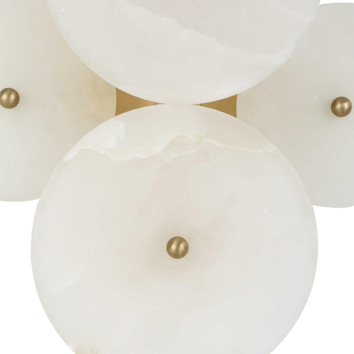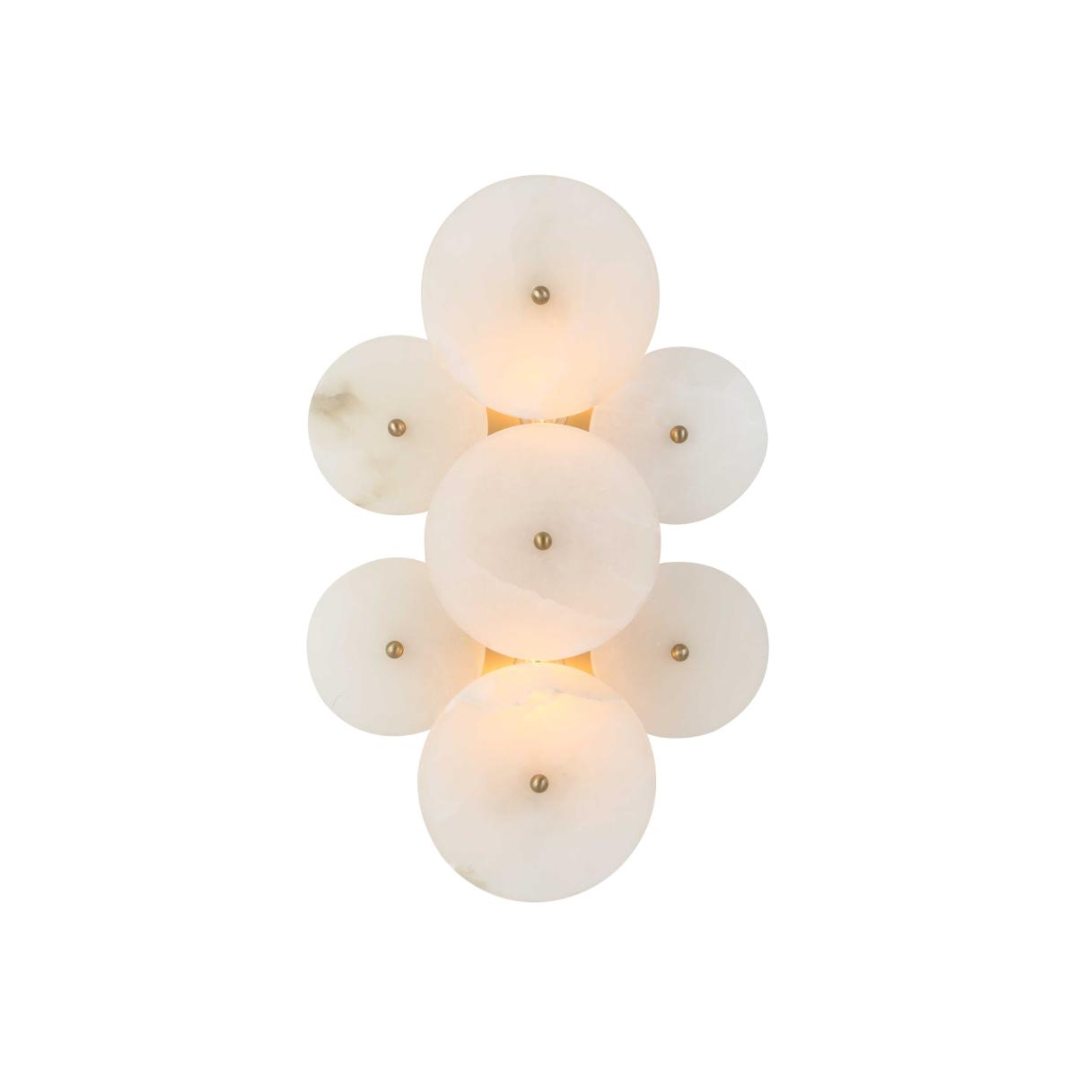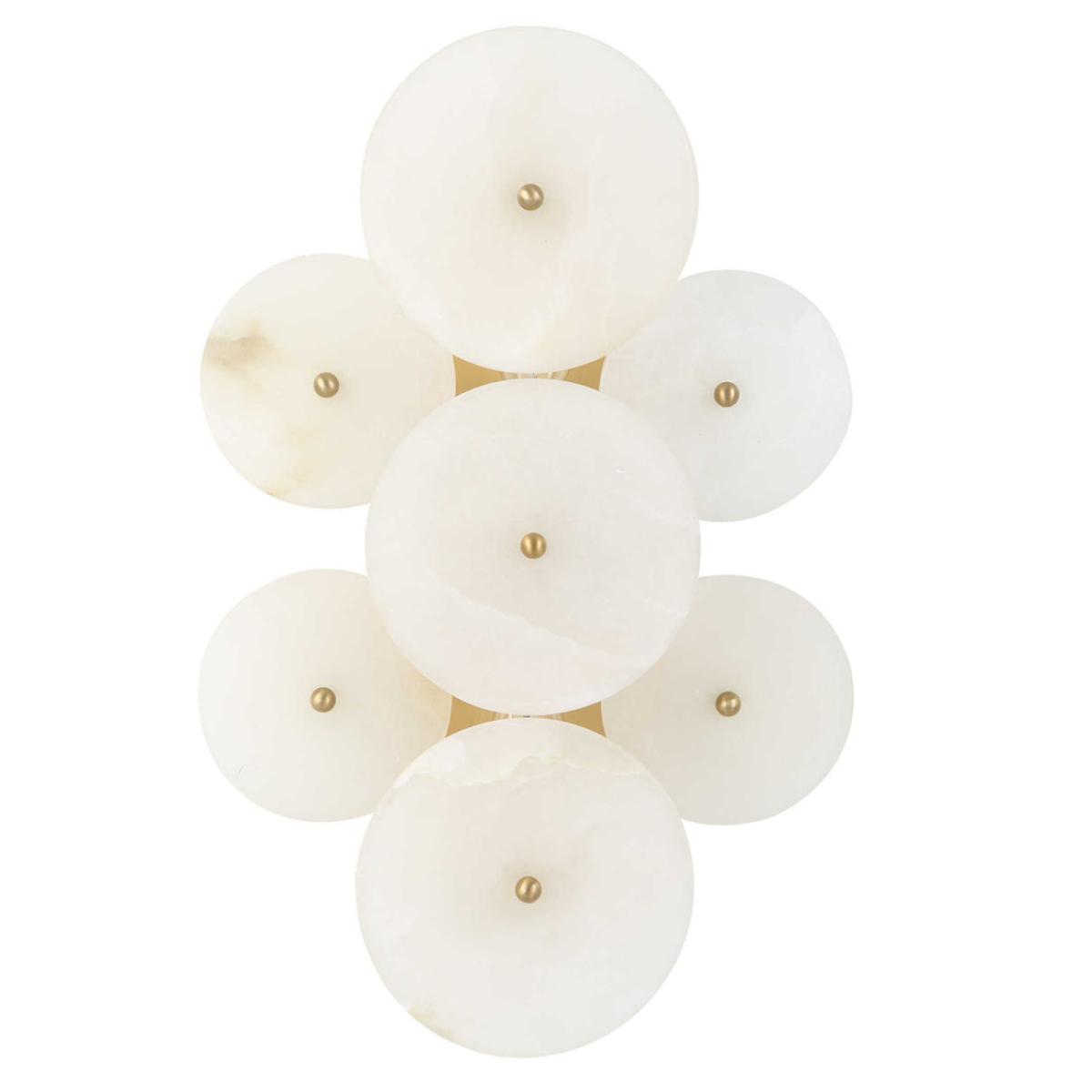 Seven discs of illuminated alabaster are held in place by a rich brass-finished button detail. Given the nature of the natural alabaster discs, some will be more opaque while other will contain more dark veining, creating a truly unique glow which can mount vertical or horizontal with 2-60 watt max candelabra sockets. Featuring a 4" extension from the wall this refined wall light is also ADA compliant. Black Label by Uttermost is an exclusive collection of premium upscale furniture, lighting and home accessories. Each item is designed by Uttermost's in-house team of skilled designers. Bringing you the latest in American style without compromise on quality. American design with a focus on upscale home luxury, relaxed design, generous proportions for a sophisticated luxury home. While Uttermost are focused on bringing you the most fashion-forward products in the industry, they know that good design means nothing without quality manufacturing. With this eye for detail from design to delivery you can be sure their products exceed expectations.