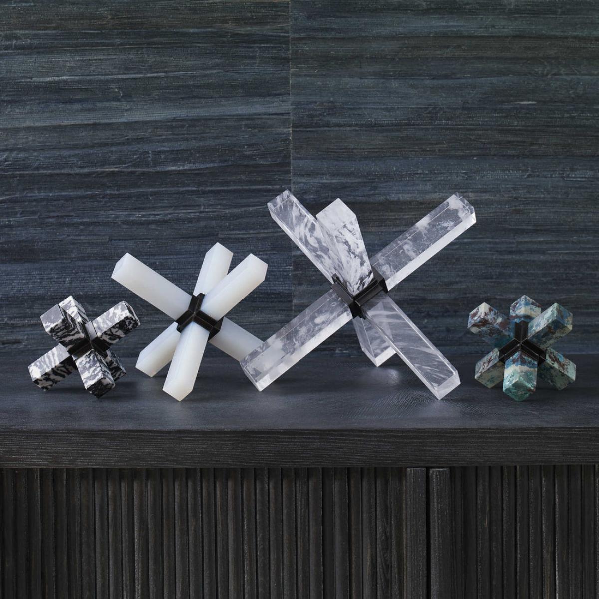 A reimagined version of the classic game of jacks, the Double Cross sculptures are a fun yet sophisticated accent to your shelves or tabletop. This sculpture is crafted from faux quartz crystal with a dark aged bronze metal center detail. Black Label by Uttermost is an exclusive collection of premium upscale furniture, lighting and home accessories. Each item is designed by Uttermost's in-house team of skilled designers. Bringing you the latest in American style without compromise on quality. American design with a focus on upscale home luxury, relaxed design, generous proportions for a sophisticated luxury home. While Uttermost are focused on bringing you the most fashion-forward products in the industry, they know that good design means nothing without quality manufacturing. With this eye for detail from design to delivery you can be sure their products exceed expectations.