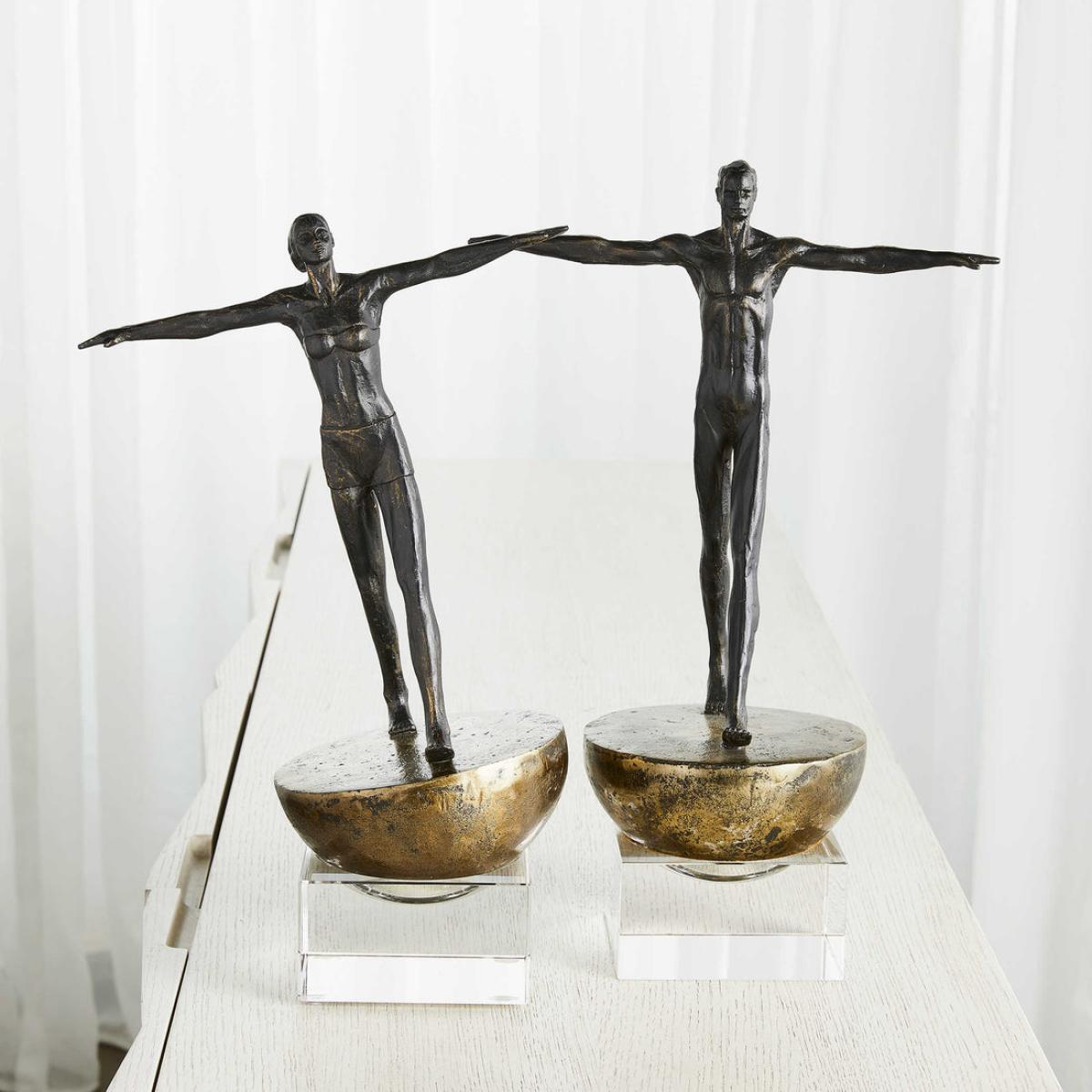 The Man Finding Balance Sculpture depicts the never-ending quest to find balance in our lives. This interactive piece is sculpted from cast iron and finished in natural iron and aged brass with a large crystal base. Can be moved in any position without tipping. Black Label by Uttermost is an exclusive collection of premium upscale furniture, lighting and home accessories. Each item is designed by Uttermost's in-house team of skilled designers. Bringing you the latest in American style without compromise on quality. American design with a focus on upscale home luxury, relaxed design, generous proportions for a sophisticated luxury home. While Uttermost are focused on bringing you the most fashion-forward products in the industry, they know that good design means nothing without quality manufacturing. With this eye for detail from design to delivery you can be sure their products exceed expectations.