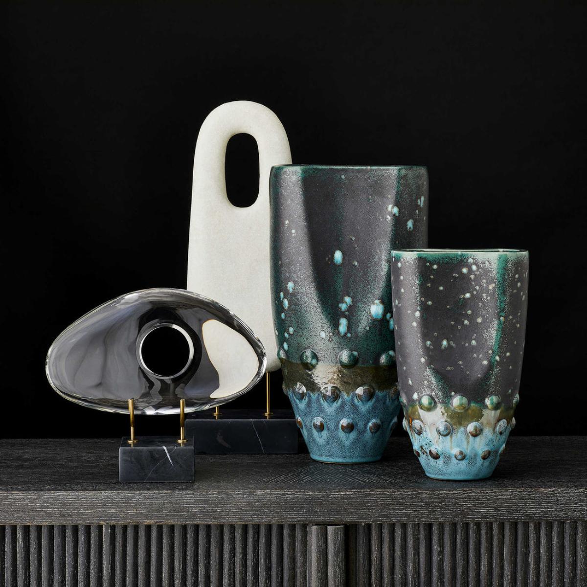Minion is defined in Webster's as one who is highly prized. The monolithium shape executed in crystal with a honed black marble base and brass pegs is bound to become a highly prized artistic accessory. They look great when placed individually. All the shapes are designed to coordinate and group together to create a great design statement. Black Label by Uttermost is an exclusive collection of premium upscale furniture, lighting and home accessories. Each item is designed by Uttermost's in-house team of skilled designers. Bringing you the latest in American style without compromise on quality. American design with a focus on upscale home luxury, relaxed design, generous proportions for a sophisticated luxury home. While Uttermost are focused on bringing you the most fashion-forward products in the industry, they know that good design means nothing without quality manufacturing. With this eye for detail from design to delivery you can be sure their products exceed expectations.