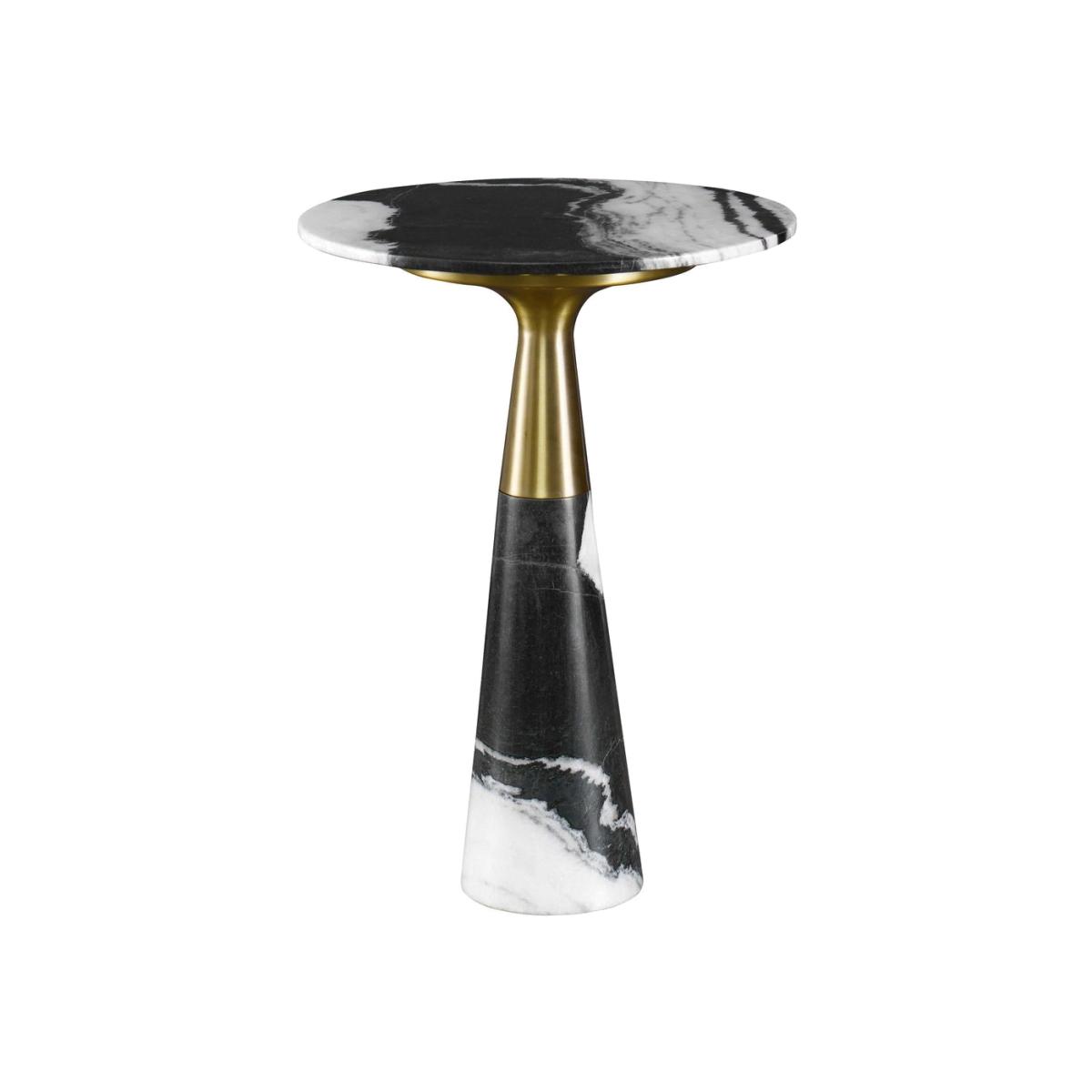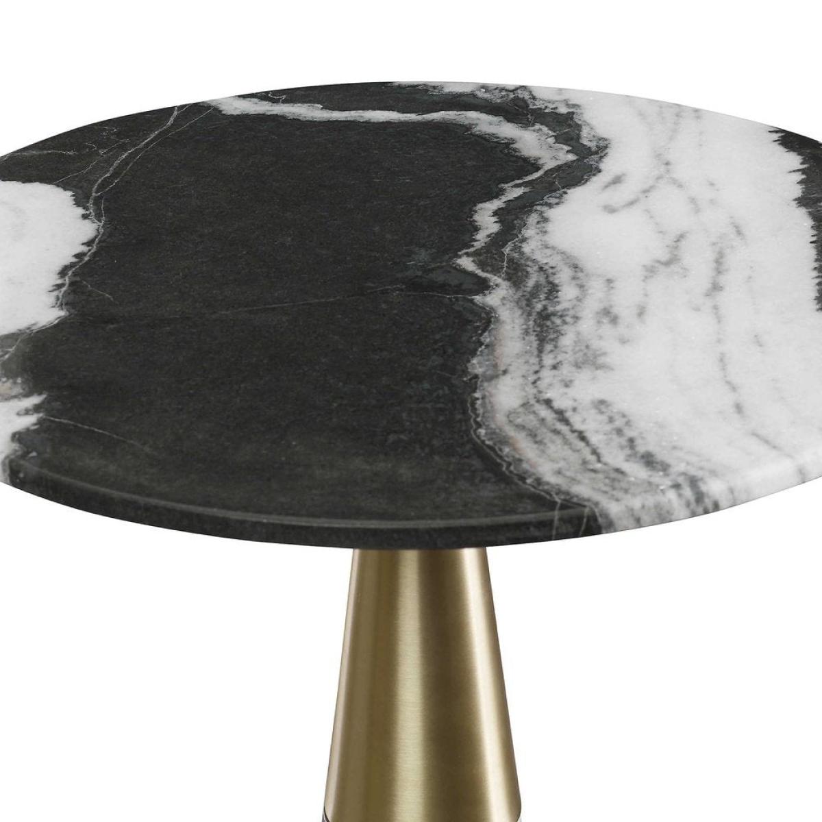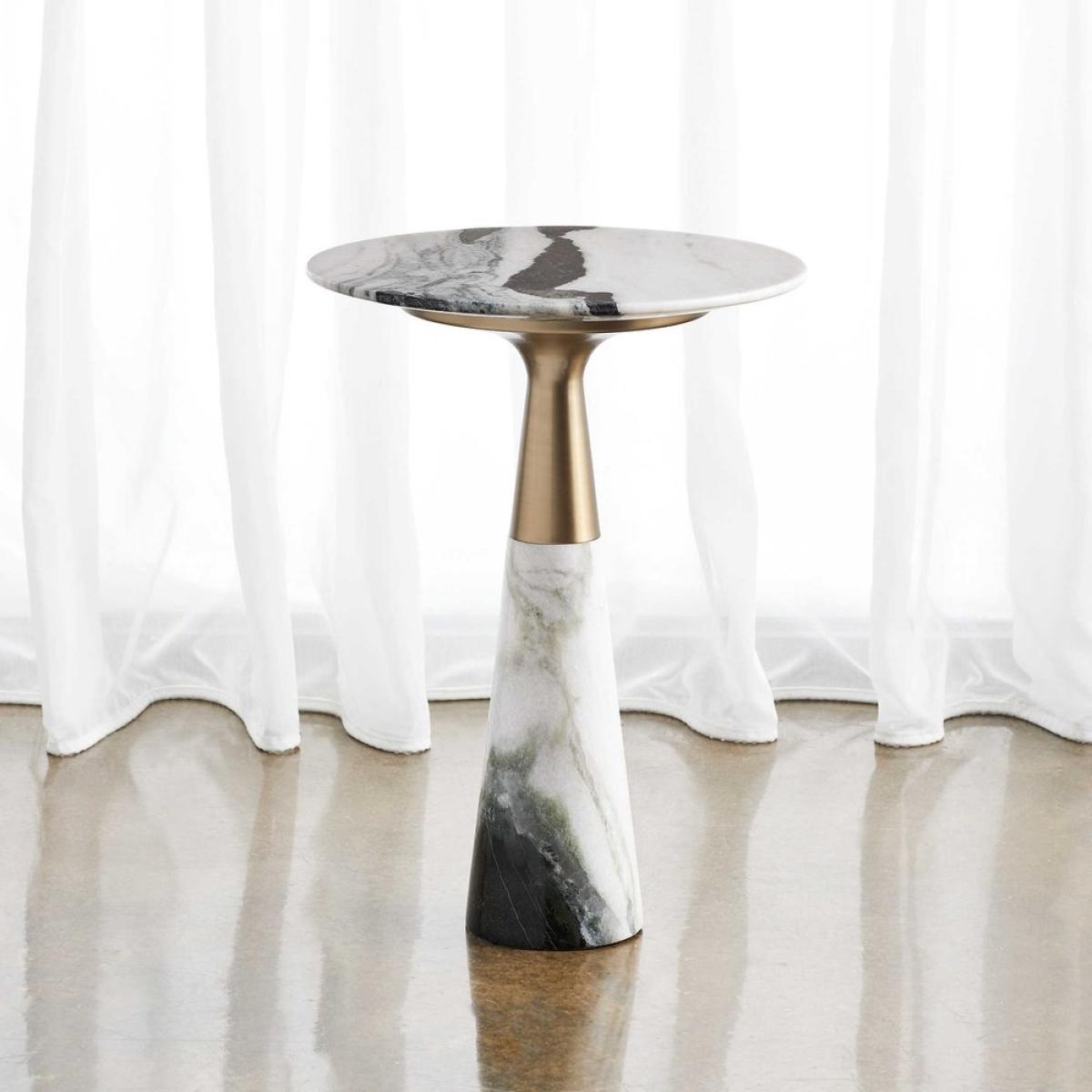 Made of dramatic and natural Panda marble with a polished finish, the organic modern shape features a rich brass finished sleeve. True to the nature of natural materials, each piece will have unique marbling and veining throughout, including shades of black, white and green. Black Label by Uttermost is an exclusive collection of premium upscale furniture, lighting and home accessories. Each item is designed by Uttermost's in-house team of skilled designers. Bringing you the latest in American style without compromise on quality. American design with a focus on upscale home luxury, relaxed design, generous proportions for a sophisticated luxury home. While Uttermost are focused on bringing you the most fashion-forward products in the industry, they know that good design means nothing without quality manufacturing. With this eye for detail from design to delivery you can be sure their products exceed expectations. Dimensions: H: 55.245 x W: 40.64 x D: 40.64cm Materials: Steel