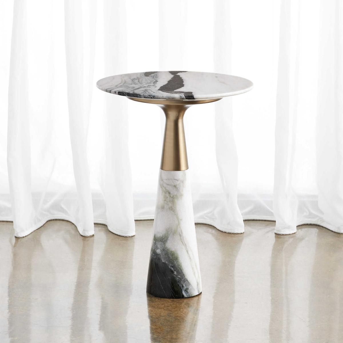 Made of dramatic and natural Panda marble with a polished finish, the organic modern shape features a rich brass finished sleeve. True to the nature of natural materials, each piece will have unique marbling and veining throughout, including shades of black, white and green. Black Label by Uttermost is an exclusive collection of premium upscale furniture, lighting and home accessories. Each item is designed by Uttermost's in-house team of skilled designers. Bringing you the latest in American style without compromise on quality. American design with a focus on upscale home luxury, relaxed design, generous proportions for a sophisticated luxury home. While Uttermost are focused on bringing you the most fashion-forward products in the industry, they know that good design means nothing without quality manufacturing. With this eye for detail from design to delivery you can be sure their products exceed expectations.