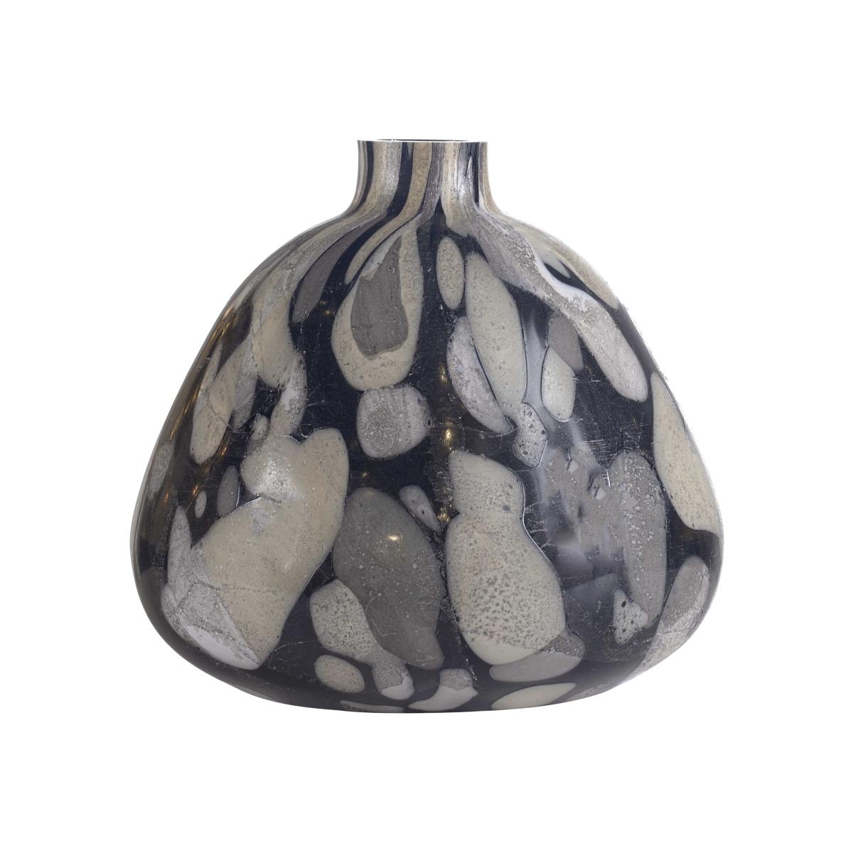 Hand blown art glass vase has an asymmetrical oblong shape that looks and feels similar to rustic 18th century folk pottery. Black glass is embedded with neutral medallions in shades of off white, beige, and gray. As glass is blown medallions all change shape and size making every piece unique. Black Label by Uttermost is an exclusive collection of premium upscale furniture, lighting and home accessories. Each item is designed by Uttermost's in-house team of skilled designers. Bringing you the latest in American style without compromise on quality. American design with a focus on upscale home luxury, relaxed design, generous proportions for a sophisticated luxury home. While Uttermost are focused on bringing you the most fashion-forward products in the industry, they know that good design means nothing without quality manufacturing. With this eye for detail from design to delivery you can be sure their products exceed expectations.
