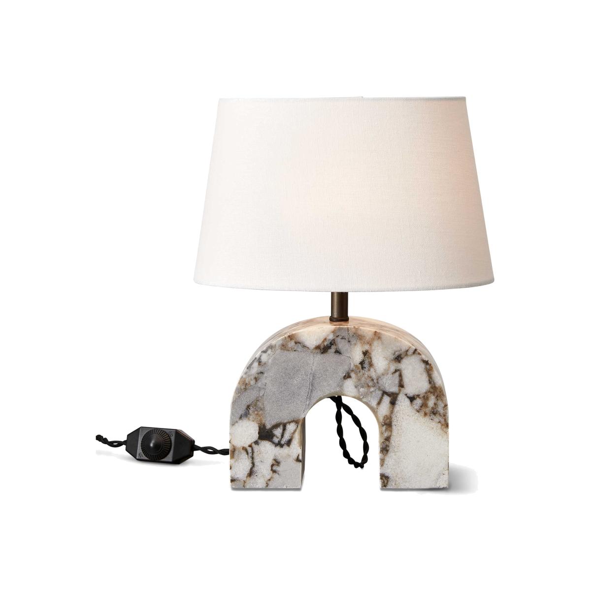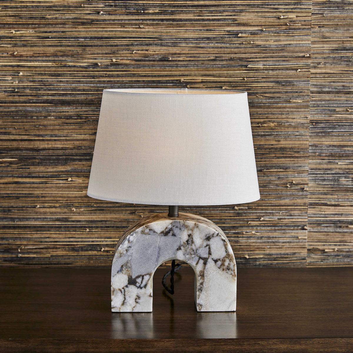 Great for shelves, under cabinets, or anywhere you need accent lighting, the simple arch of this mini lamp is made of veined onyx. Its oval shade sits atop an acid bronze finished neck and is made from white textured cotton. Complete with black twisted fabric cord. Black Label by Uttermost is an exclusive collection of premium upscale furniture, lighting and home accessories. Each item is designed by Uttermost's in-house team of skilled designers. Bringing you the latest in American style without compromise on quality. American design with a focus on upscale home luxury, relaxed design, generous proportions for a sophisticated luxury home. While Uttermost are focused on bringing you the most fashion-forward products in the industry, they know that good design means nothing without quality manufacturing. With this eye for detail from design to delivery you can be sure their products exceed expectations.