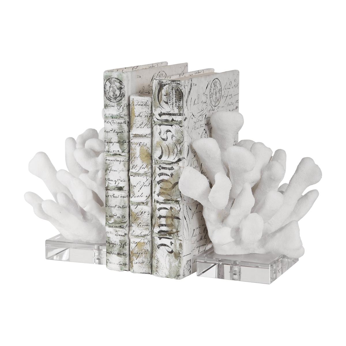 Set of two bookends featuring textured faux white coral on crystal bases. Sizes: S-5x9x8, L-6x9x8 Uttermost is a US interior brand with an extensive range of furniture, lighting & accessories with an upscale luxury aesthetic. We have some of the of the most talented designers in the industry creating fresh and unique complimentary collections to beautify your home. While Uttermost are focused on bringing you the most fashion-forward products in the industry, they know that good design means nothing without quality manufacturing. With this eye for detail from design to delivery you can be sure their products exceed expectations.