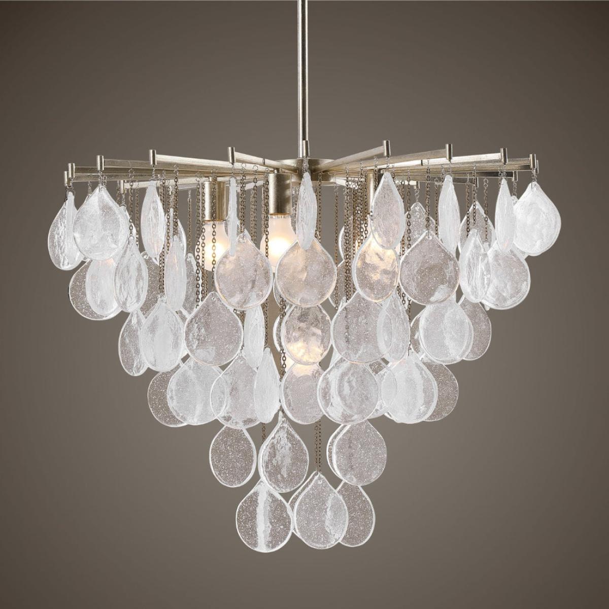 A classic shape with sumptuous tear drop seeded glass suspended on fine chains refracting light beautifully. Trascending traditional design to blend in with even more contemporary interiors and finihshed in a rich antique bright silver lead. With 60-60 watt max, edison sockets and includes 15' wire, 3-12" stems and 1-6" stem for adjustable installation. Uttermost is a US interior brand with an extensive range of furniture, lighting & accessories with an upscale luxury aesthetic. We have some of the of the most talented designers in the industry creating fresh and unique complimentary collections to beautify your home. While Uttermost are focused on bringing you the most fashion-forward products in the industry, they know that good design means nothing without quality manufacturing. With this eye for detail from design to delivery you can be sure their products exceed expectations.