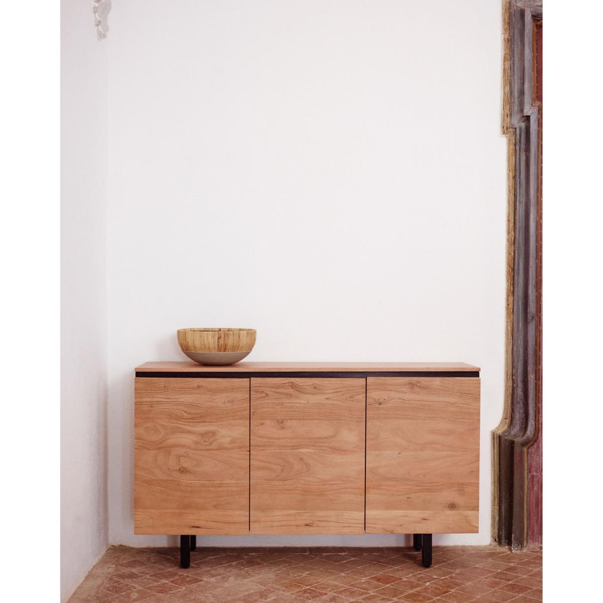 The solid acacia wood Uxue collection is a Kave Home team design, that stands out due to the black decorative line that crosses the entire piece. Each piece is one-of-a-kind, thanks to the unique tones and grain of the wood.