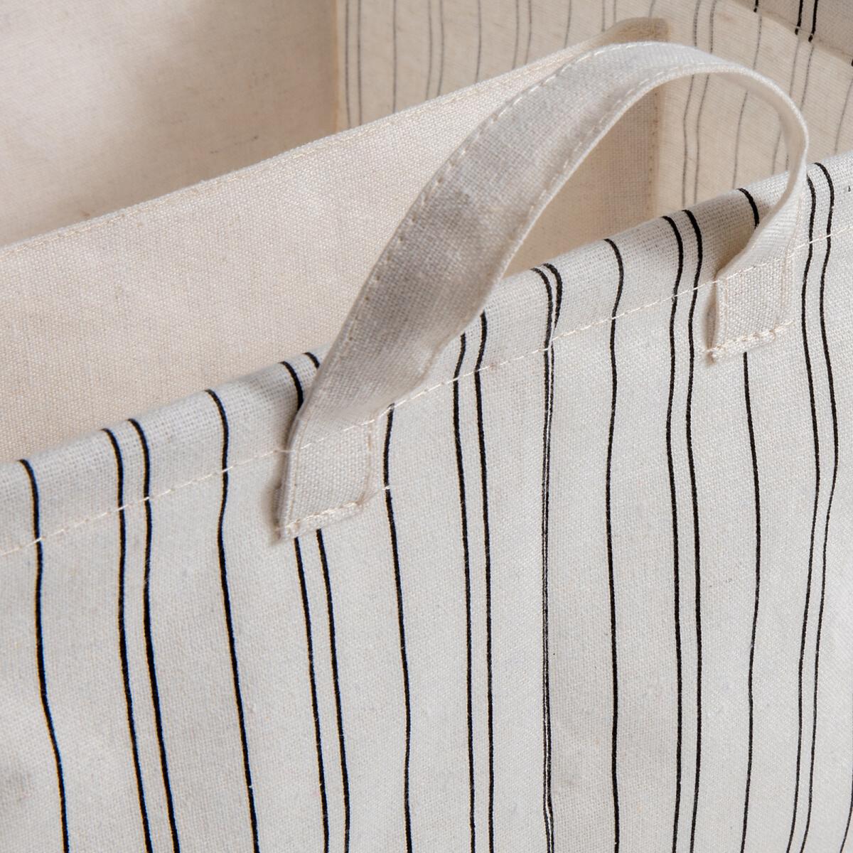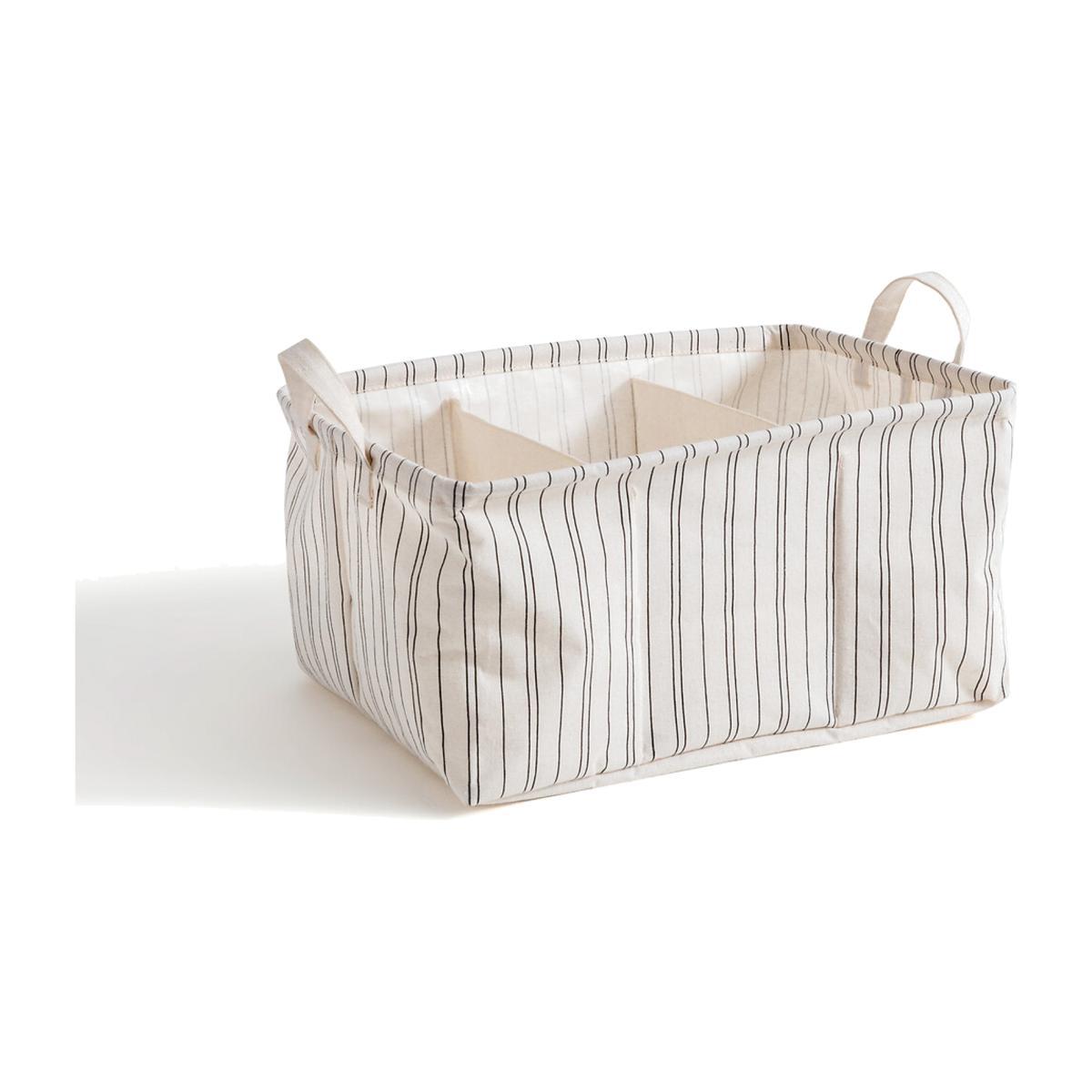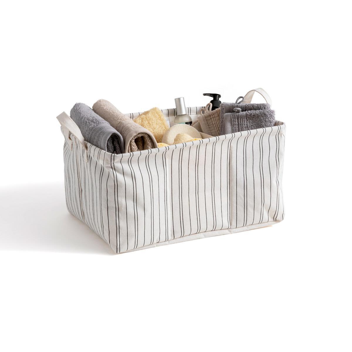 I love this basket for its versatility and understated style. It's a practical solution that suits a variety of interiors, from Scandi minimalism to cosy country schemes. The striped design adds a subtle visual interest without overpowering a space, making it perfect for organising clutter while still maintaining a tidy look. I recommend using it in living rooms or bedrooms for magazines, throws, or accessories, or in the bathroom for organisation. For a cohesive look, pair it with other neutral textile elements, and consider using different-sized baskets throughout your home for a consistent, organised aesthetic. Its neutral tone and simple design make it an adaptable piece that can easily fit into many interior styles.