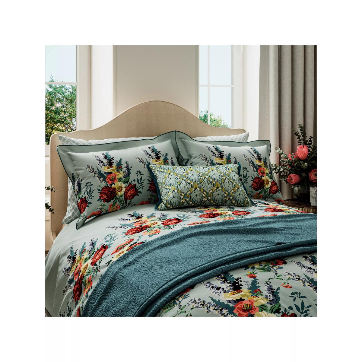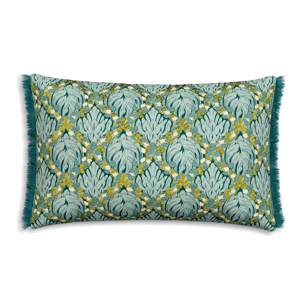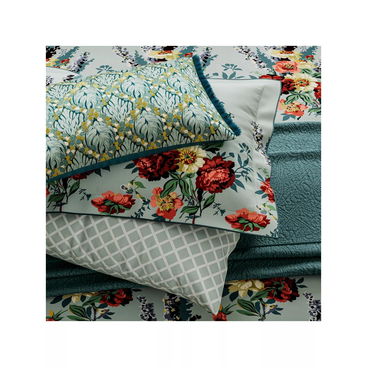 I love this cushion for its bold botanical pattern and rich teal tones, which add a vibrant yet sophisticated touch to various interiors. It works particularly well in eclectic, nature-inspired, or classic schemes, bringing a pop of colour to neutral sofas or beds. For practical styling tips, layer it with other textured or plain cushions to create depth, and consider pairing it with furniture in natural woods or crisp whites to let the pattern stand out. Its size makes it versatile for both lounging and decorative purposes, making it an easy way to introduce colour and pattern into your space without overwhelming it.
