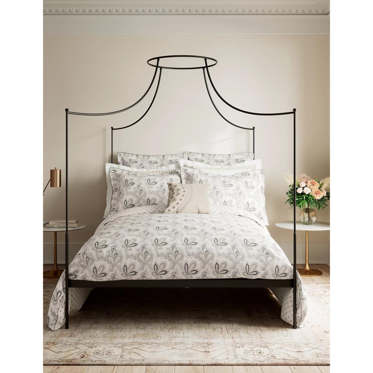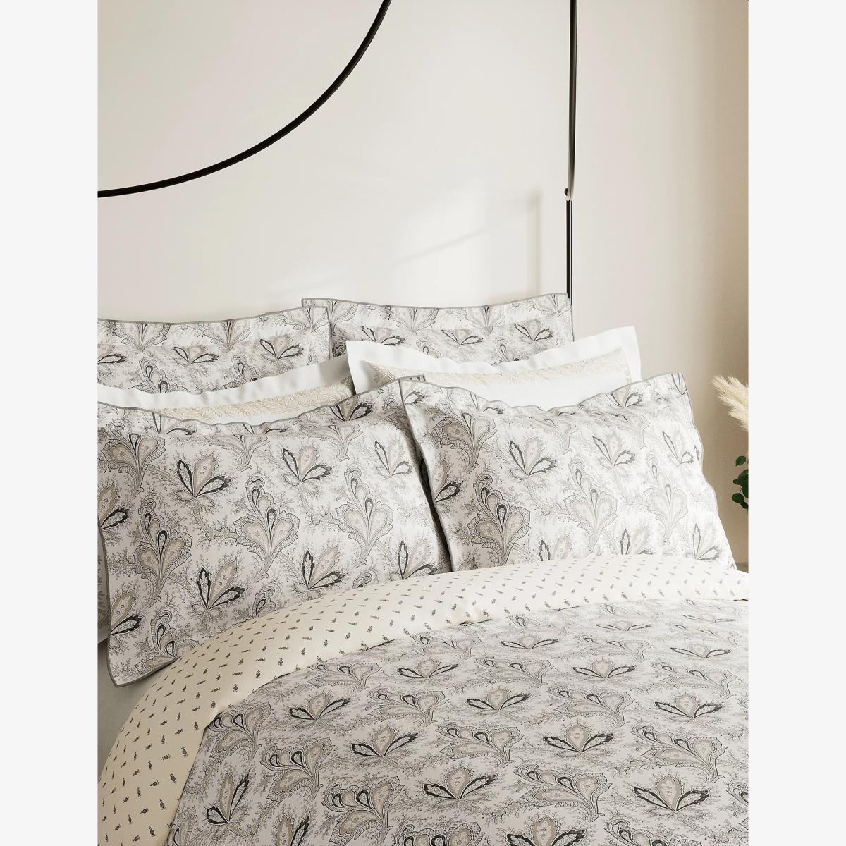 A delicate paisley-style print lends a traditional feel to this Aarya duvet cover by V&A. It's crafted from pure cotton percale with a 200 thread count for a luxurious finish. The heritage print is based on a woodblock sample for a fabric originally made in the 1850s by London-based Garratt's Silk Printing Works. A smaller motif features on the reverse for a coordinated look. Matching pillowcases sold separately