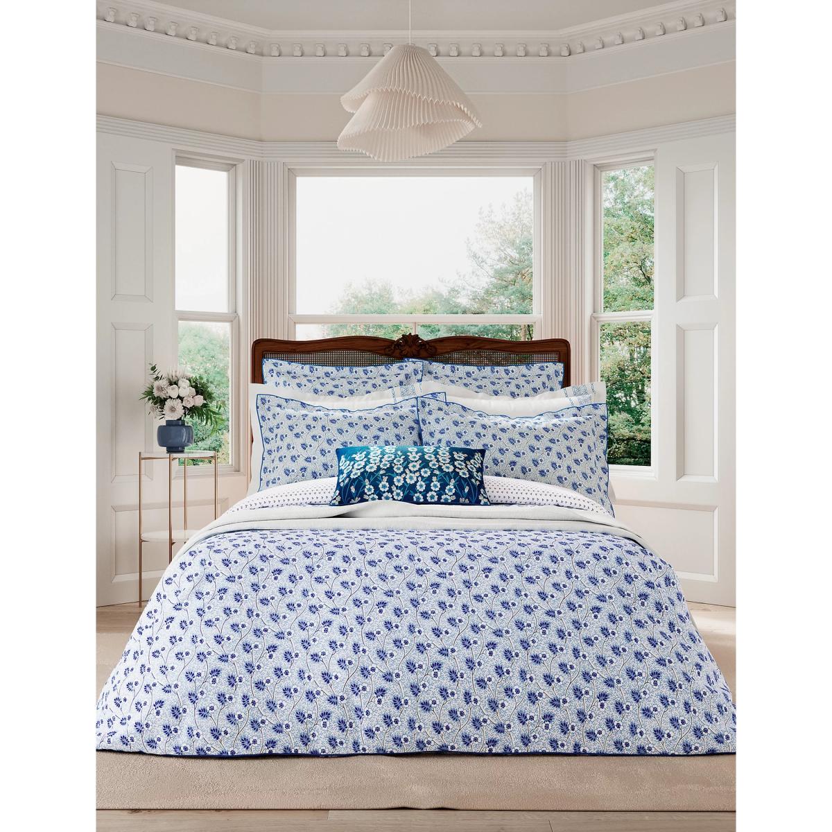 V&A Pure Cotton Percale Swanwick Duvet Cover - 5FT - Blue/White, Blue/White