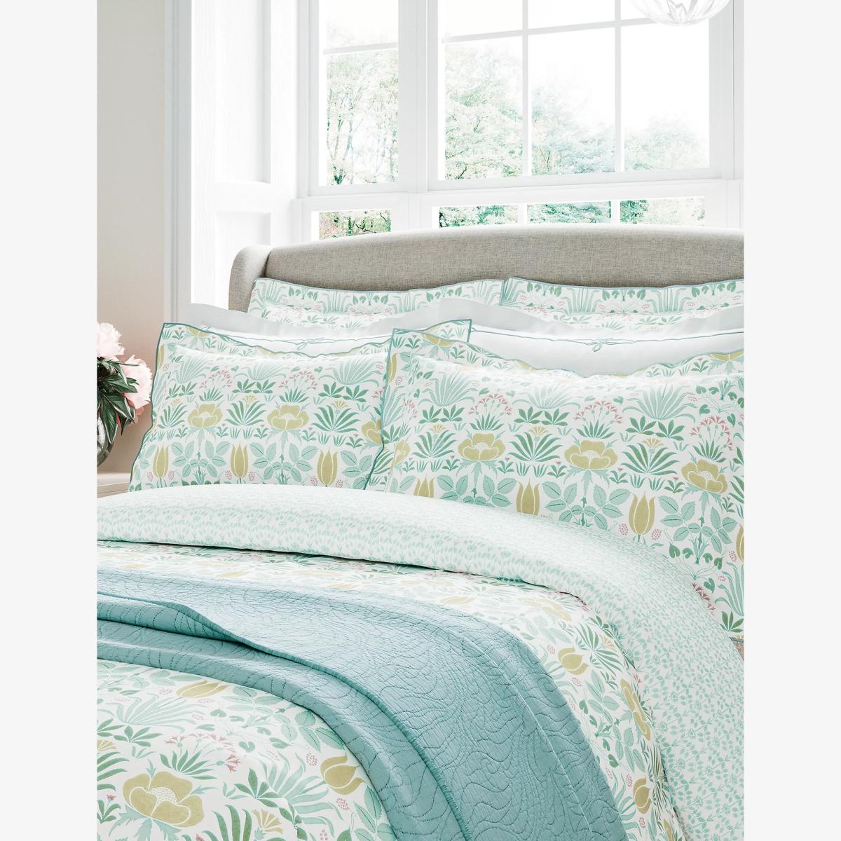 Bring a fresh and bright feel to your bedroom with this pretty Voysey Anselm duvet cover by V&A. The bedding is made from soft pure cotton percale fabric with a premium 200 thread count, helping you to dream in comfort. It has a colourful floral print that's based on a wallpaper pattern from the late 1800s by British Arts and Crafts architect-designer C.F.A Voysey. The reverse features a smaller repeated motif for a coordinated look. Matching pillowcases sold separately