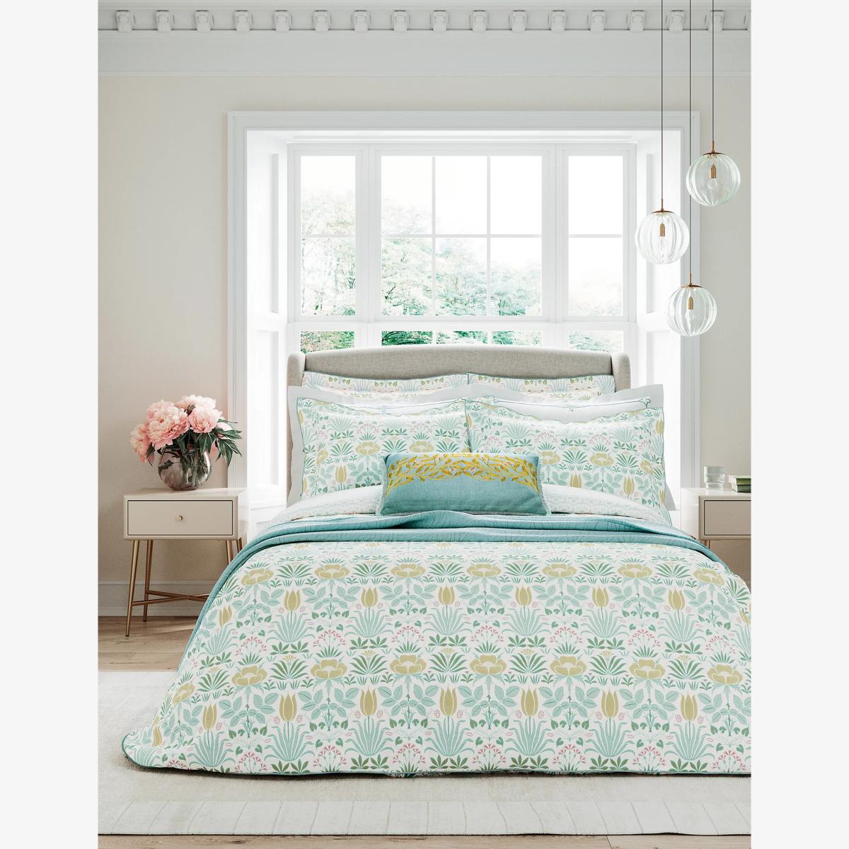 Bring a fresh and bright feel to your bedroom with this pretty Voysey Anselm duvet cover by V&A. The bedding is made from soft pure cotton percale fabric with a premium 200 thread count, helping you to dream in comfort. It has a colourful floral print that's based on a wallpaper pattern from the late 1800s by British Arts and Crafts architect-designer C.F.A Voysey. The reverse features a smaller repeated motif for a coordinated look. Matching pillowcases sold separately