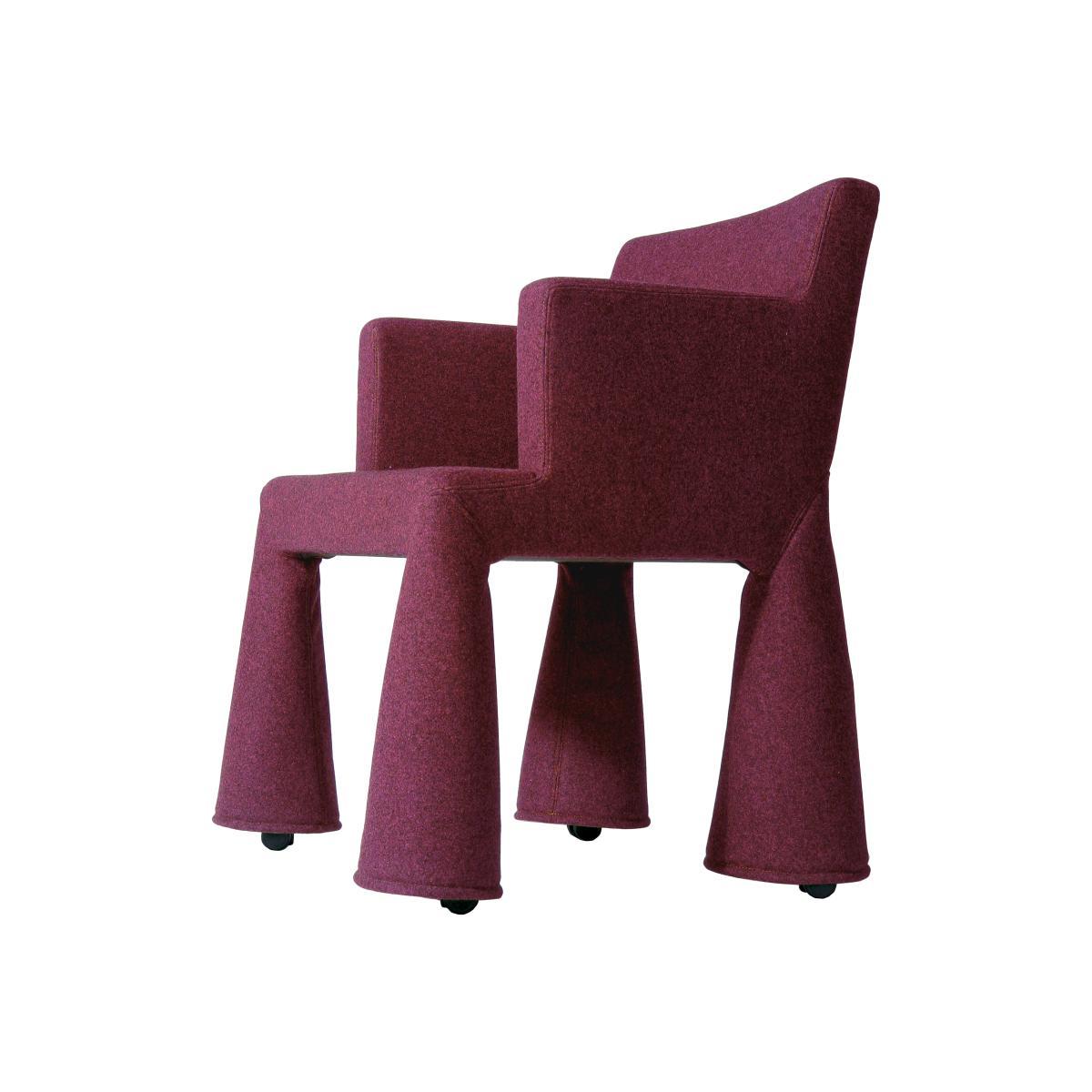 V. I. P. Was conceived by Marcel Wanders for '' the Word Expo 2000'' in Holland. This chair is completely covered with a fabric in virgin dyed wool that falls on the feet as a bottom of pants. Fabric hides thus the wheels of the chair and gives the impression that she glides above the ground. V. I. P. Is an original and comfortable seat that suits just as well as dining room chairs, office armchair.