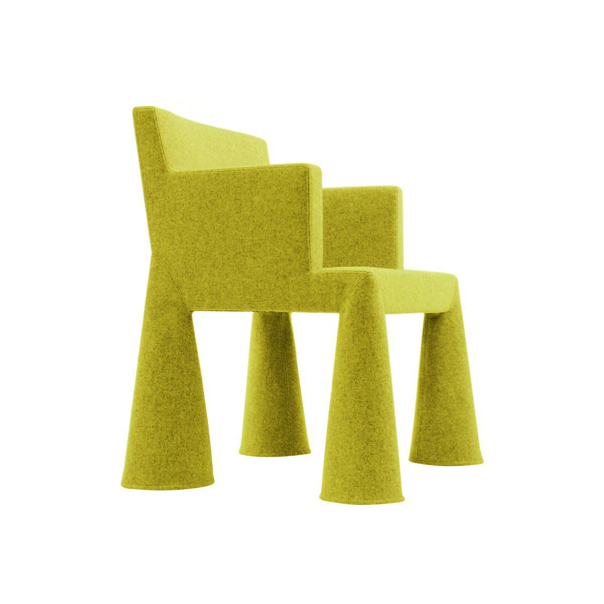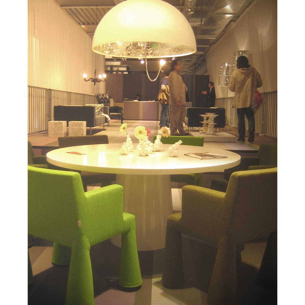 V. I. P. Was conceived by Marcel Wanders for '' the Word Expo 2000'' in Holland. This chair is completely covered with a fabric in virgin dyed wool that falls on the feet as a bottom of pants. Fabric hides thus the wheels of the chair and gives the impression that she glides above the ground. V. I. P. Is an original and comfortable seat that suits just as well as dining room chairs, office armchair.