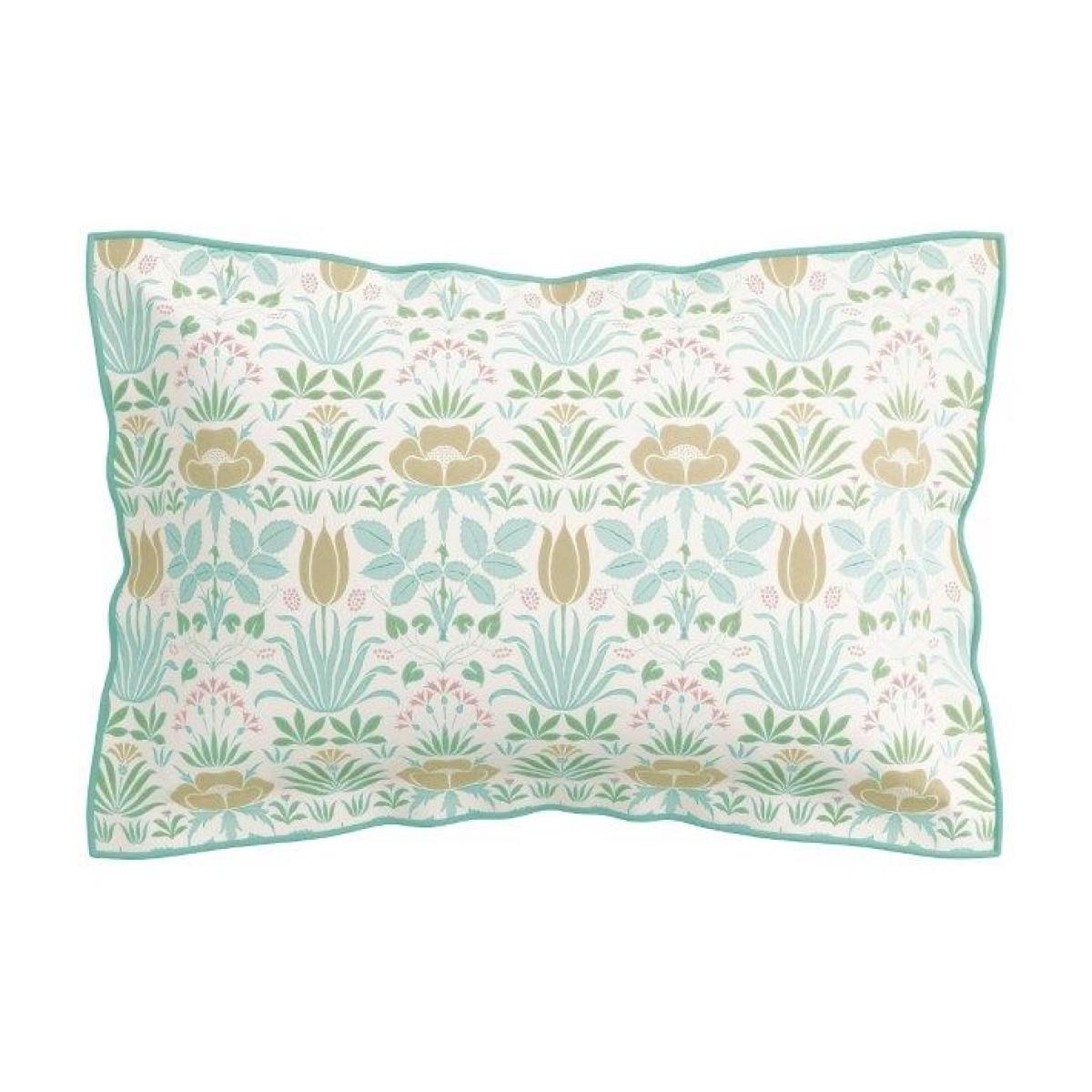 The V&A Voysey Anselm Duvet Cover Set - Aqua This light and airy floral design is based on a wallpaper pattern called The Anselm by British Arts and Crafts architect-designer, C.F.A. Voysey (1857-1941), from the late 1800s and features a floral design repeating across 200 thread count cotton percale, sourced through the Better Cotton Initiative. Thread Count: 200 Composition: 100% BCI Cotton Percale Includes Single Duvet Includes 1 Single Pillowcase Double, King and Superking Size Duvet Includes Pair of Pillowcases Care Instructions Machine Washable All screens vary in colour reproduction and whilst every effort has been made to display the colour as accurately as possible it is for guidance only.