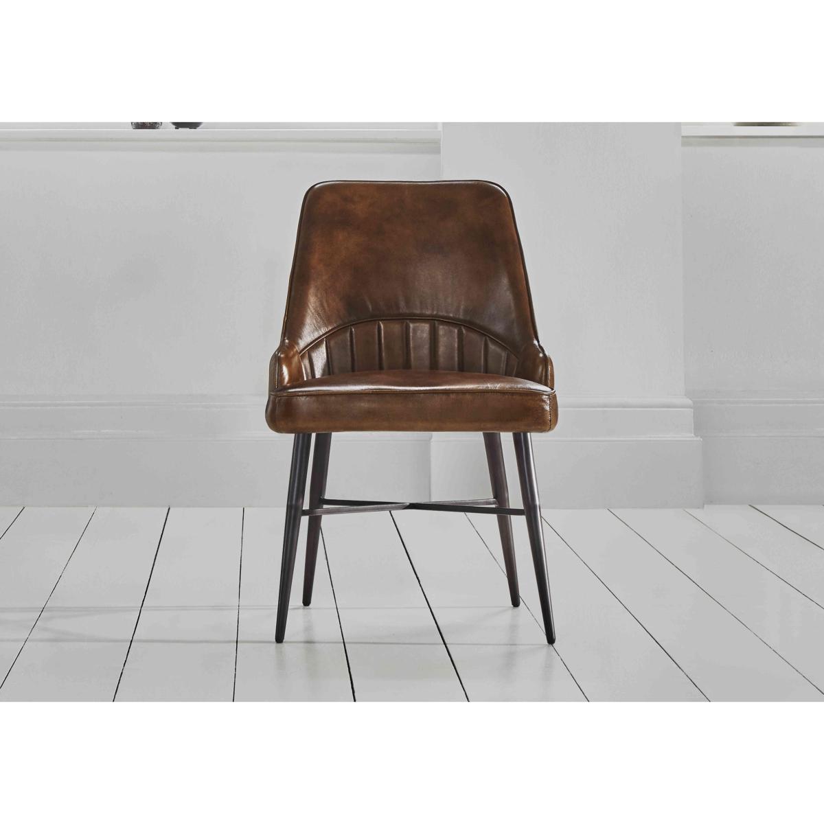 Channel mid-century chic with the stylish Val Leather Dining Chair, featuring 100% leather upholstery, curved stitching on the backrest and powder coated metal legs. Why you'll love it A striking, retro-modern industrial look that stands out from the crowd. Beautifully finished with leather stitching for a clean look. You’ll stay comfy with a padded seat interior. It’s easy to care for with durable, wipe-clean leather. Take your pick from 4 gorgeous colours. You can easily match it to a wide range of dining tables and styles. What you need to know Minimal assembly required. This chair is available to purchase as a set of 4.