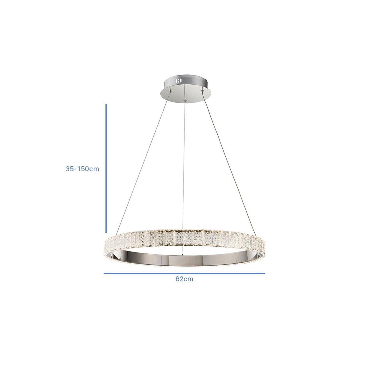 Let your lighting scheme achieve its maximum potential with the elegance of our Valdis pendant. This impressive pendant features a chrome-finished metal ring, finished with sparkling crystals for added opulence and complete with integrated LED for a highly-efficient glow. Place the Valdis above your dining table for a stunning centrepiece that's ready to impress. Discover the Valdis Range.