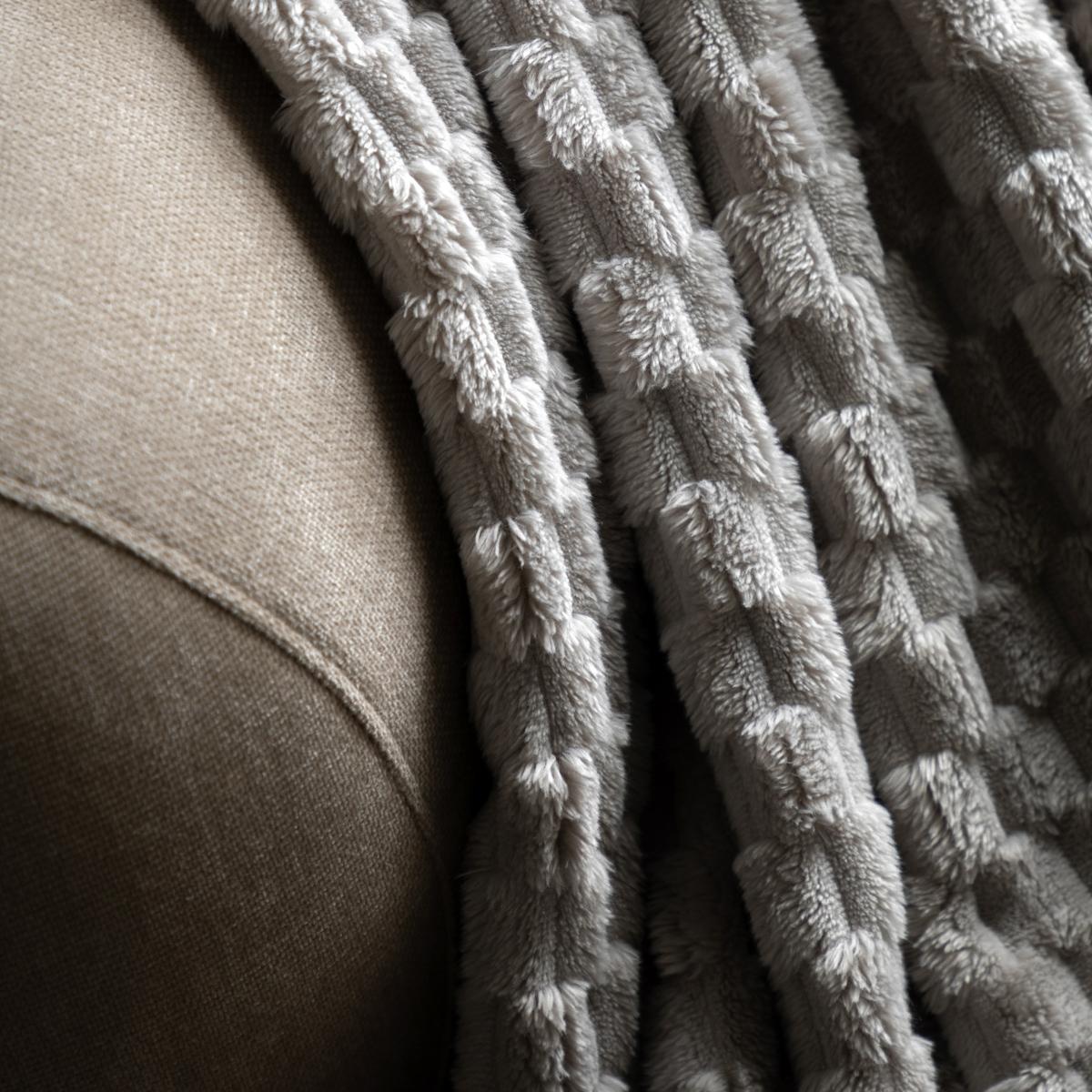 This grey throw is a versatile addition to any living space, offering both comfort and style. I love how the velvet knitted texture adds subtle richness and warmth without overwhelming the decor. It works particularly well in modern, minimalist, or Scandinavian interiors where its neutral tone can be layered with bolder accents, or in cosy country settings where it adds a touch of understated elegance. For practical styling, drape it casually over a sofa or bed, allowing the textured side to be on display for visual interest. It’s also great for layering with other textured textiles, like linen or wool throws, to create a warm, inviting look. Overall, a reliable staple that combines comfort with contemporary appeal.