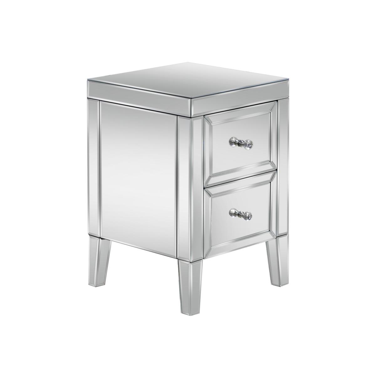The beautiful and glamorous Valencia 2 drawer bedside will be a stylish addition to any bedroom. Constructed from a MDF frame this stunning range features a mirrored finish with bevelled edges and elegant mock crystal handles. This item comes pre-assembled for additional convenience and is part of a complete bedroom collection. Cleaning and Care Wipe with dry cloth