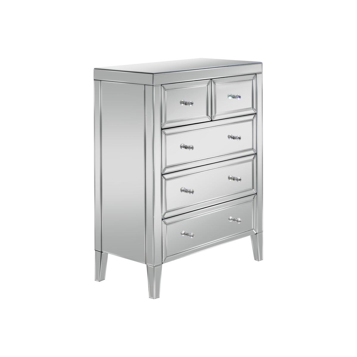 The beautiful and glamorous Valencia 3 2 drawer chest will be a stylish addition to any bedroom. Constructed from a MDF frame this stunning range features a mirrored finish with bevelled edges and elegant mock crystal handles. This item comes pre-assembled for additional convenience and is part of a complete bedroom collection. Cleaning and Care Wipe with dry cloth