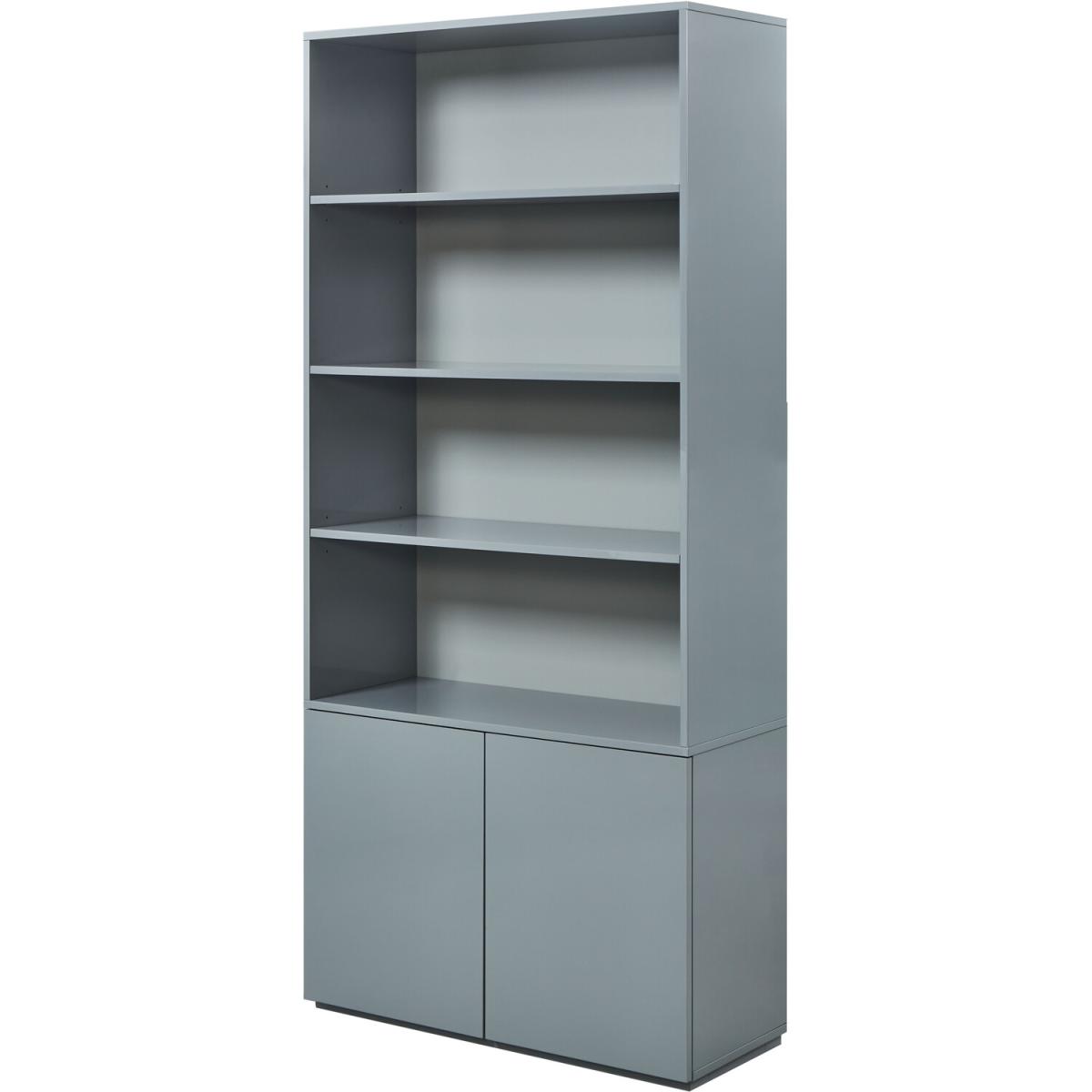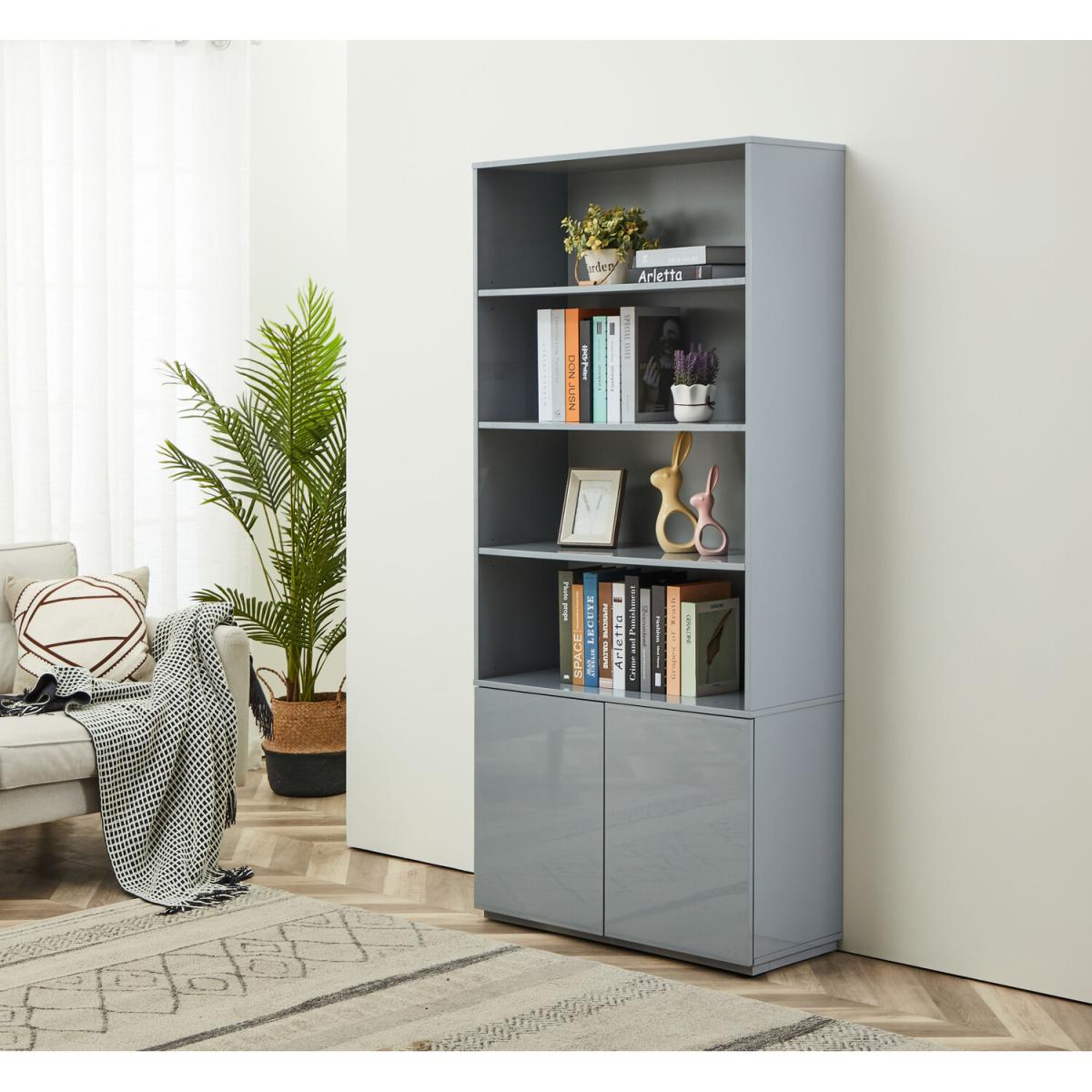Adding an edge of modern chic to any room, this Valencia Bookcase offers ideal storage in your living room thanks to the shelves and additional cupboard space. It is beautifully fashioned from a grey high gloss finish to give a clean, contemporary look that will complement all your interior decor styles with ease. Part of a matching collection with the Valencia Sideboard, TV Unit and Coffee Table available, you can give yourself a new living room suite with ease.