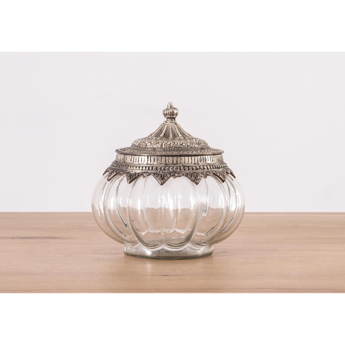 Echoing the glamour of a bygone era, the Valencia Large Lidded Jar is a real beauty! The rounded and textured Glass body is beautifully finished with a beautifully detailed ornate Silver Metal lid. This will look simply stunning wherever you choose to use it.
