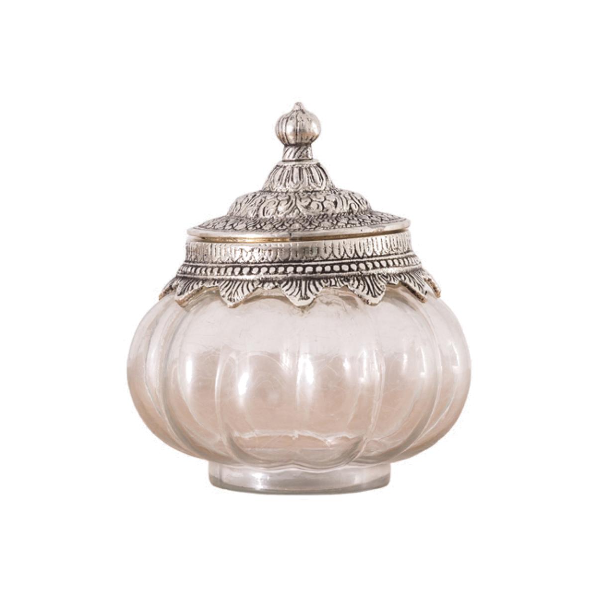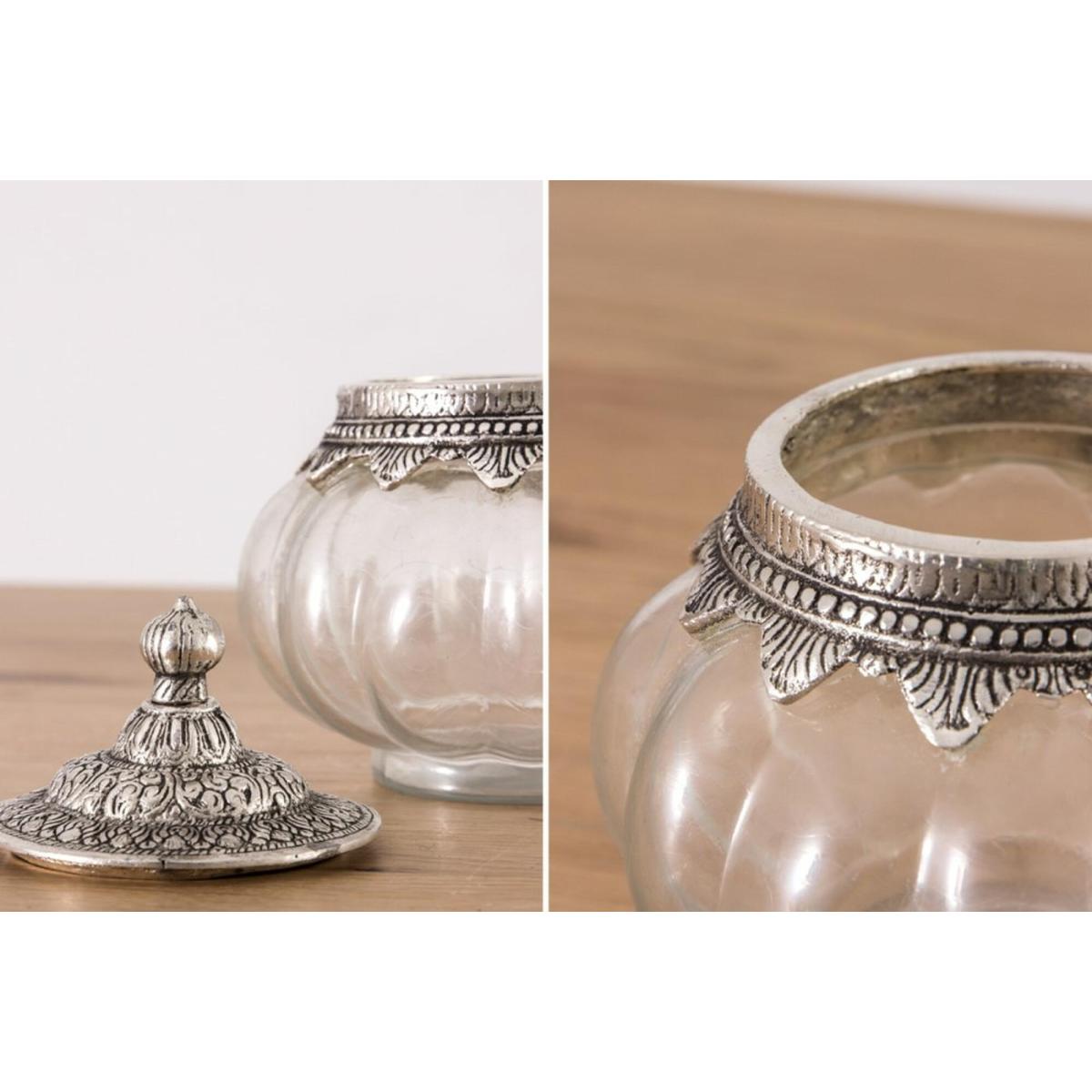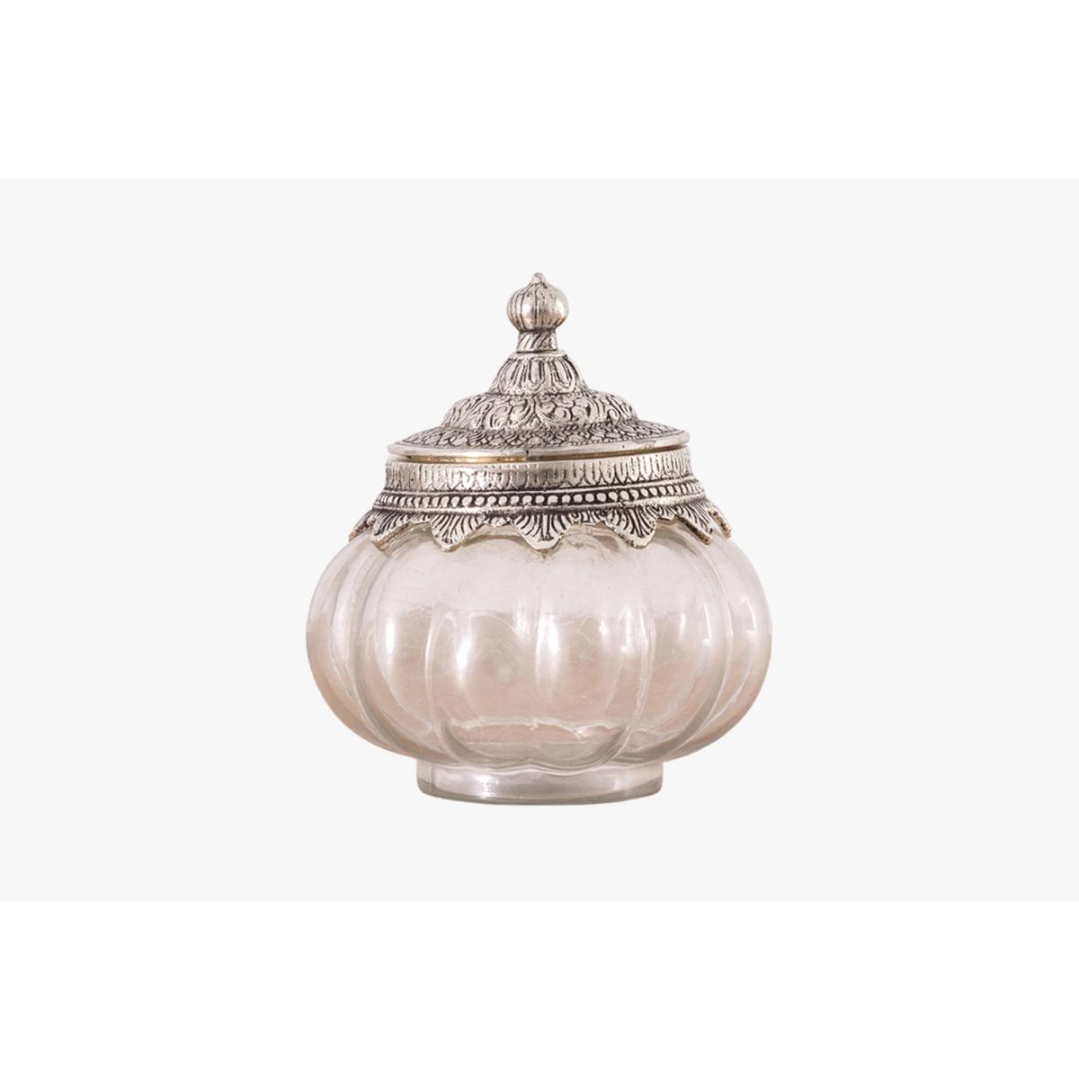 I love this jar for its classic yet versatile design, making it a great piece to add nonchalant elegance to various interiors. The vintage-inspired detailing on the lid pairs beautifully with both traditional and modern schemes, such as shabby chic or eclectic styles. It works particularly well in spaces that embrace subtle glamour-think alongside stone surfaces or in a glass-fronted cabinet. To style it effectively, consider using it as a standalone feature on a sideboard or console table, perhaps paired with unfussy greenery or decorative trinkets. Its lidded design also makes it functional for storing small items, adding both aesthetic appeal and practicality to your home.
