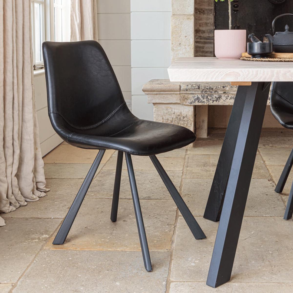 Represents a 5% saving when purchased as a set!. 1. 7 metre table set consists of:. 2. 4 metre table set consists of:. Sophisticated, cool, calm and collected. All of the above can be claimed of the Natural Oak Valencia dining set, especially with the addition of the Dali chairs. This solid oak dining set is deserving of the high credit that it receives, combining a rich white pigmented lacquered solid oak table top with a black contemporary metal base. Made up of two solid oak panels, a central ridge runs the length of this chunky oak dining table, a simple design feature that adds distinctive appeal. Oblique angle edges further consolidate its contemporary nature and the black metal table legs are artfully splayed outwards – sure to spark conversation. These metal table legs are powder coated to protect against the day to day, but also usefully adjust to three settings beneath the table. They’re capable of moving further towards the centre of the table, to give more legroom to those sitting at the ends, or can be moved to simply personalise the appearance of this modern dining table when it is in situ. The Dali chair goes perfectly alongside this striking table, boasting wipe-clean faux leather fabric paired with overtly splayed black metal legs that mirror the leg design of the table. The 1. 7 metre set comes with 4 of these contemporary chairs, whilst the lengthier 2. 4 metre set has 6 included. There are also. Two other chair options to consider with the natural oak set. , both also with an inbuilt 5% discount.