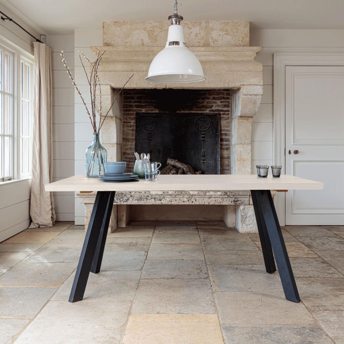 This large solid oak dining table will become the perfect place to share memories around, suitable for families and the rigours of day-to-day life. Available as a 1. 7 metre or 2. 4 metre table, it can sit up to 6 and 8 respectively. Simply pick your preferred size in the drop down above. It has a wonderfully chunky solid oak surface, made from two pieces of high grade timber and is reassuringly tactile to the touch. Benefitting from a pigmented oak design that has a lacquered finish, the natural oak shade provides versatility to pair this with a variety of colour palettes. The two piece construction of the table top, creates a stylish and design-intended central ridge that adds to this table’s modern design. Black powder coated splayed legs support this chunky dining table, adding to its statement modern look. These legs can be easily attached at three places on the table’s underneath, meaning they can move further towards the centre for more leg room at the ends, or simply adjusted to best suit your preferred aesthetic. We think this solid oak furniture will slide expertly into both contemporary and rural settings easily, adding an air of contemporary grace to any room. If you are looking for dining chairs too, this table goes very nicely with the. Gaudi. Or. Dali. Chairs, and is also. Available as dining sets. With an inbuilt 5% discount.