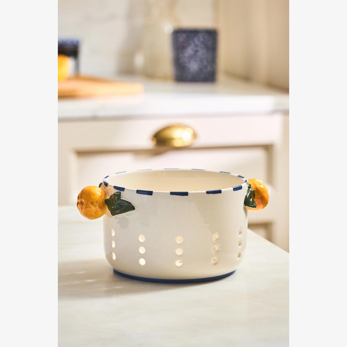 I love the Valencia Stoneware Berry Basket for its timeless charm and versatility. Its neutral tones and handcrafted feel make it a great addition to both contemporary and rustic interiors, adding a touch of warmth and texture. It works well as a centrepiece on a kitchen island or dining table, perfect for storing berries, nuts or small produce, and can also double as a charming display piece for organising essentials like napkins or utensils. For styling tips, consider pairing it with similar stoneware or natural materials like wood and linen to create a cohesive look. Its playful handle details lend a touch of personality, making it an easy upgrade to casual, country, or eclectic spaces.
