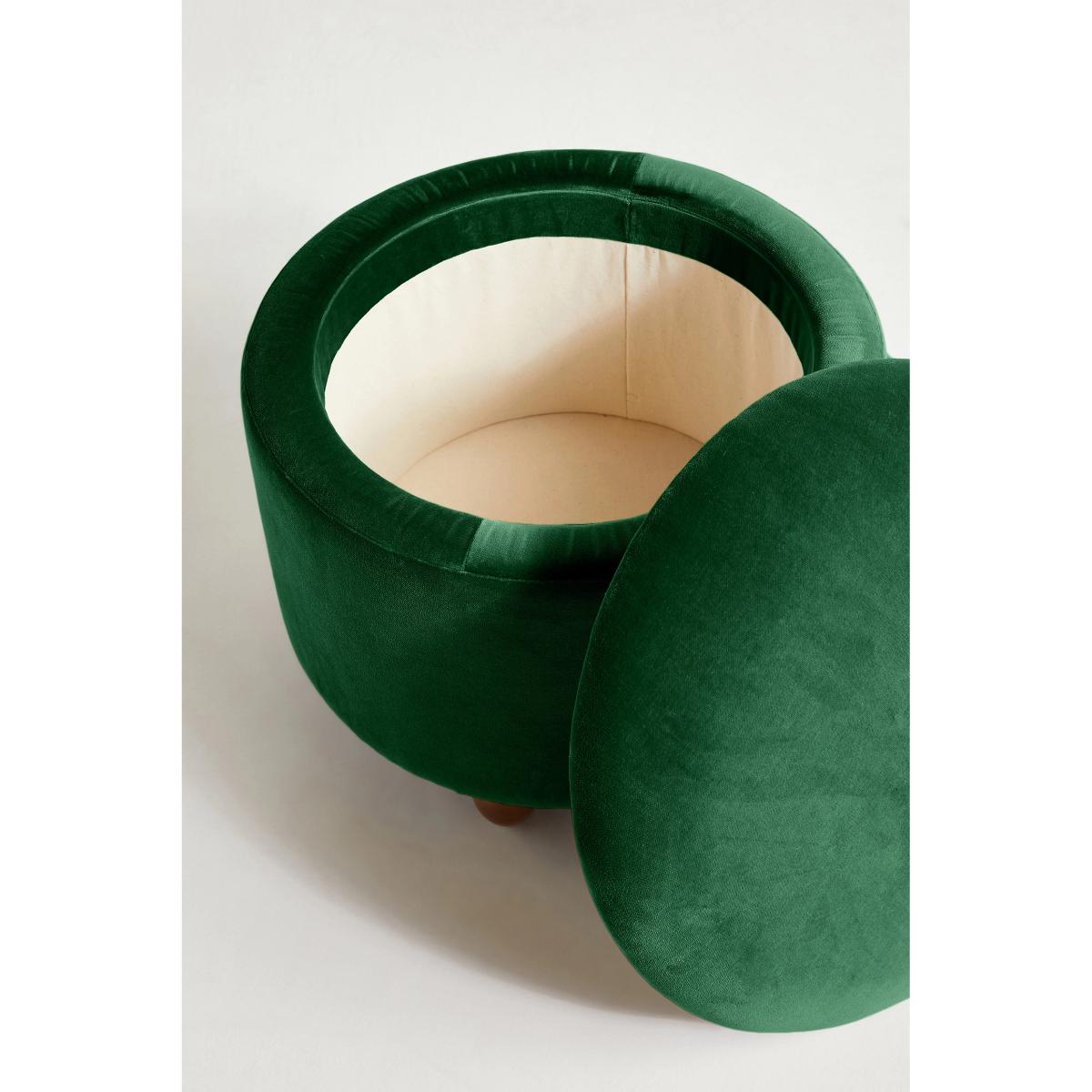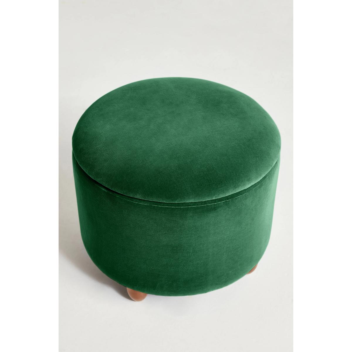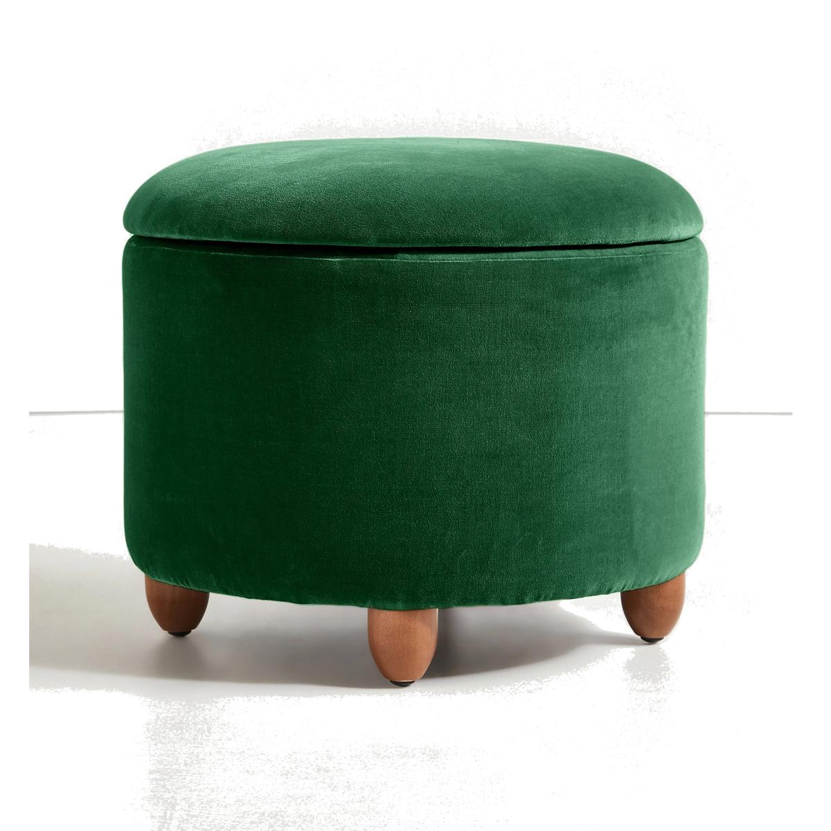 Rendered in luxuriously soft Valencia velvet with maple wood feet, this classic rounded ottoman features a plump top cushion that not only offers a comfy spot for your feet to rest, but also removes to reveal storage for magazines, throws, and other entertaining accessories. For ordering assistance and more, please contact us. For aesthetic advice and tips to help decorate your space, enjoy our complimentary home styling services. * Furniture pieces weighing over 30kg include delivery to your room of choice and packaging removal * Valencia velvet upholstery; cotton, polyester * Tight-upholstered seat; foam and fiber fill * One removable seat cushion opens to interior storage * Kiln-dried hardwood frame; maple wood legs * Professionally clean * This piece is intended for indoor use * No assembly required * Imported