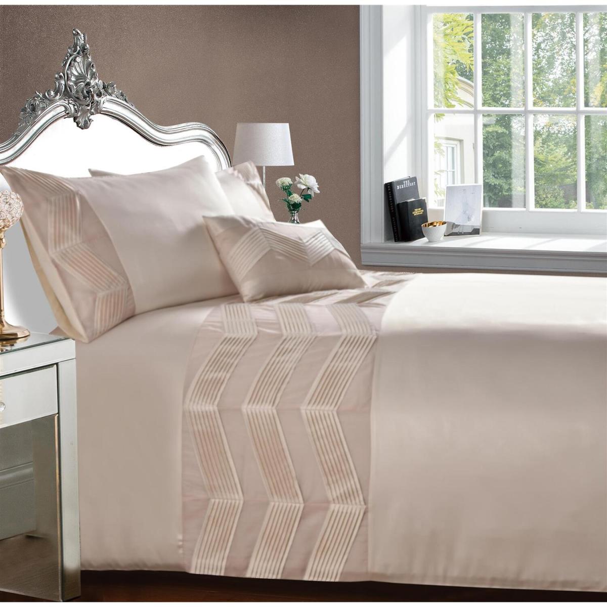 These minimalistic duvet cover sets are sure to be the perfect addition to any bedroom with their solid design featuring a banded, zig zag patterned section. The pleated material adds elegance and glamour to your bedroom. The muted colour makes this the ideal bedding for any style of bedroom.