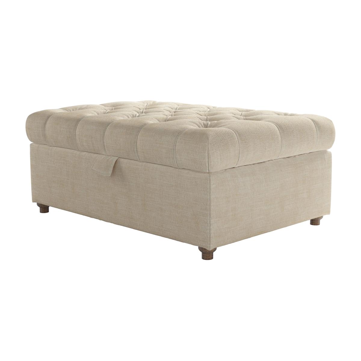 Our Valentin storage box features a luxurious deep-tufted top that lifts up to reveal handy storage space below. Hide away extra cushions and bedding or use it as extra seating, a footrest or stylish coffee table in the centre of your living room.