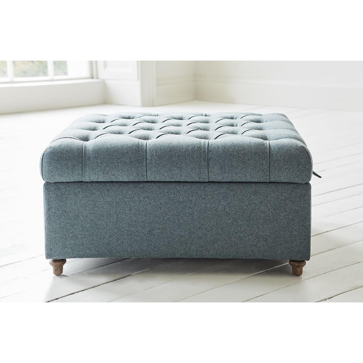 Valentin Medium Square Storage Footstool in Tide Organic Smart Cotton