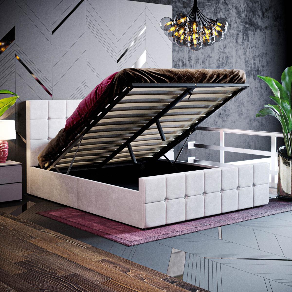 Valentina Fabric Ottoman Bed - Light Grey Velvet / 58.5kg