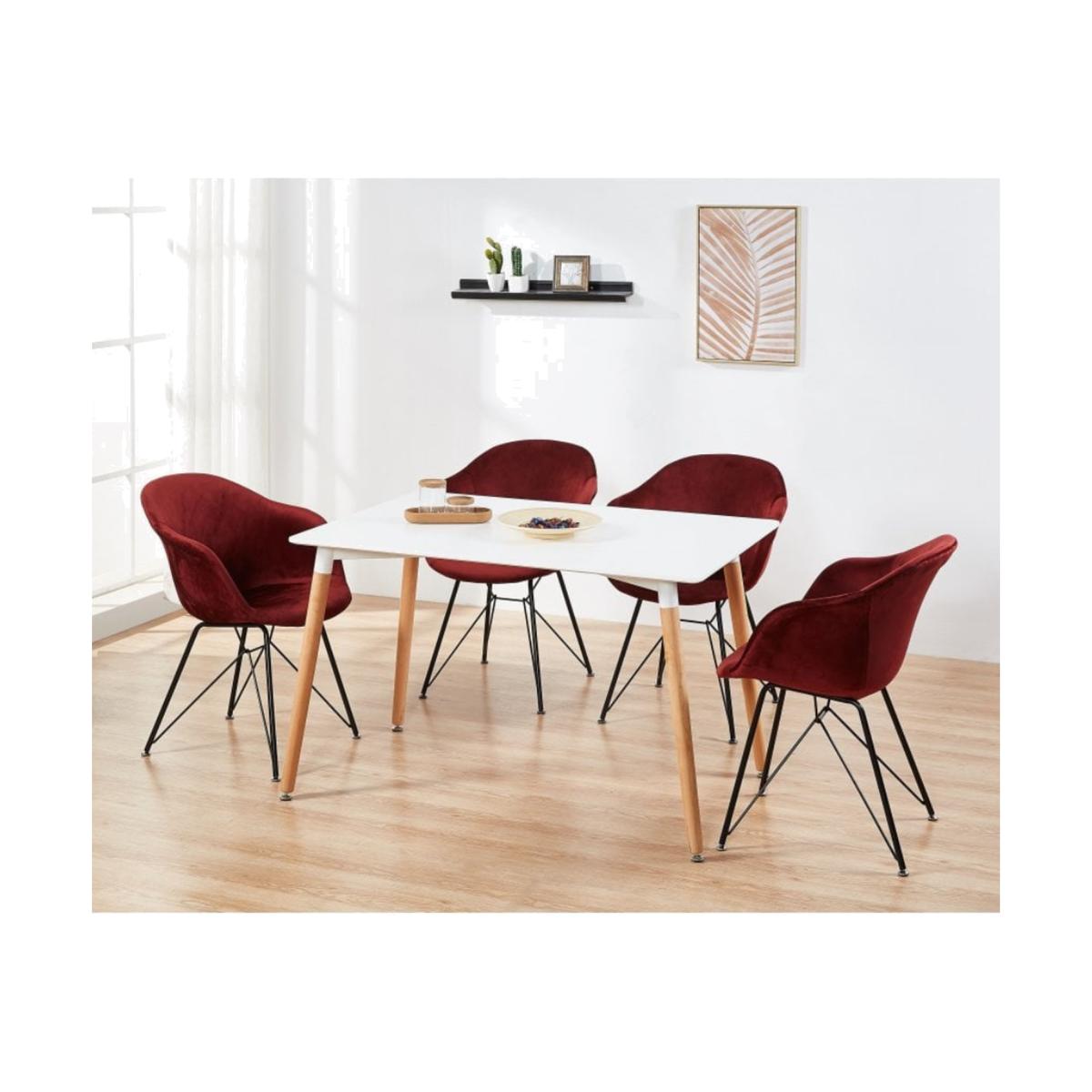 The dining set includes the Halo table that is simplistic and has a versatile design which, as well as a dining table, could also work as a desk. The solid wooden legs feature floor protectors to avoid scratching your floors, and the laminated tabletop is wipe-clean with a subtle satin sheen. The table comes with Valentina velvet chairs. The velvet body and sturdy legs will keep your guests comfy, while your home stays cosy. The quality materials used will ensure these chairs looks fantastic for years to come. Despite having a wonderful, smooth velvet finish to an already fantastic chair, additional care has gone into making the metal powder-coated black legs.
