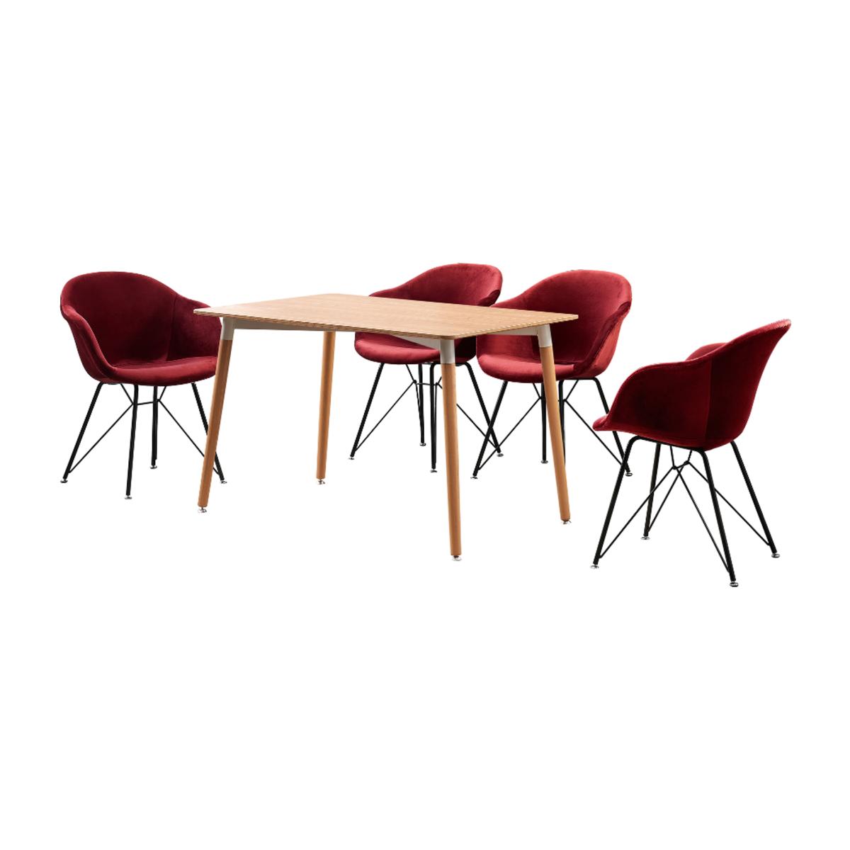 The dining set includes the Halo table that is simplistic and has a versatile design which, as well as a dining table, could also work as a desk. The solid wooden legs feature floor protectors to avoid scratching your floors, and the laminated tabletop is wipe-clean with a subtle satin sheen. The table comes with Valentina velvet chairs. The velvet body and sturdy legs will keep your guests comfy, while your home stays cosy. The quality materials used will ensure these chairs looks fantastic for years to come. Despite having a wonderful, smooth velvet finish to an already fantastic chair, additional care has gone into making the metal powder-coated black legs.