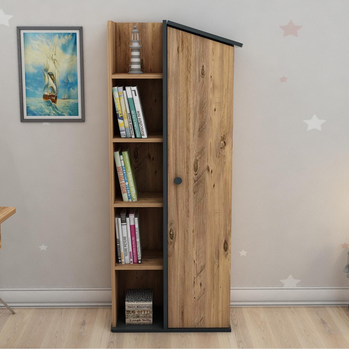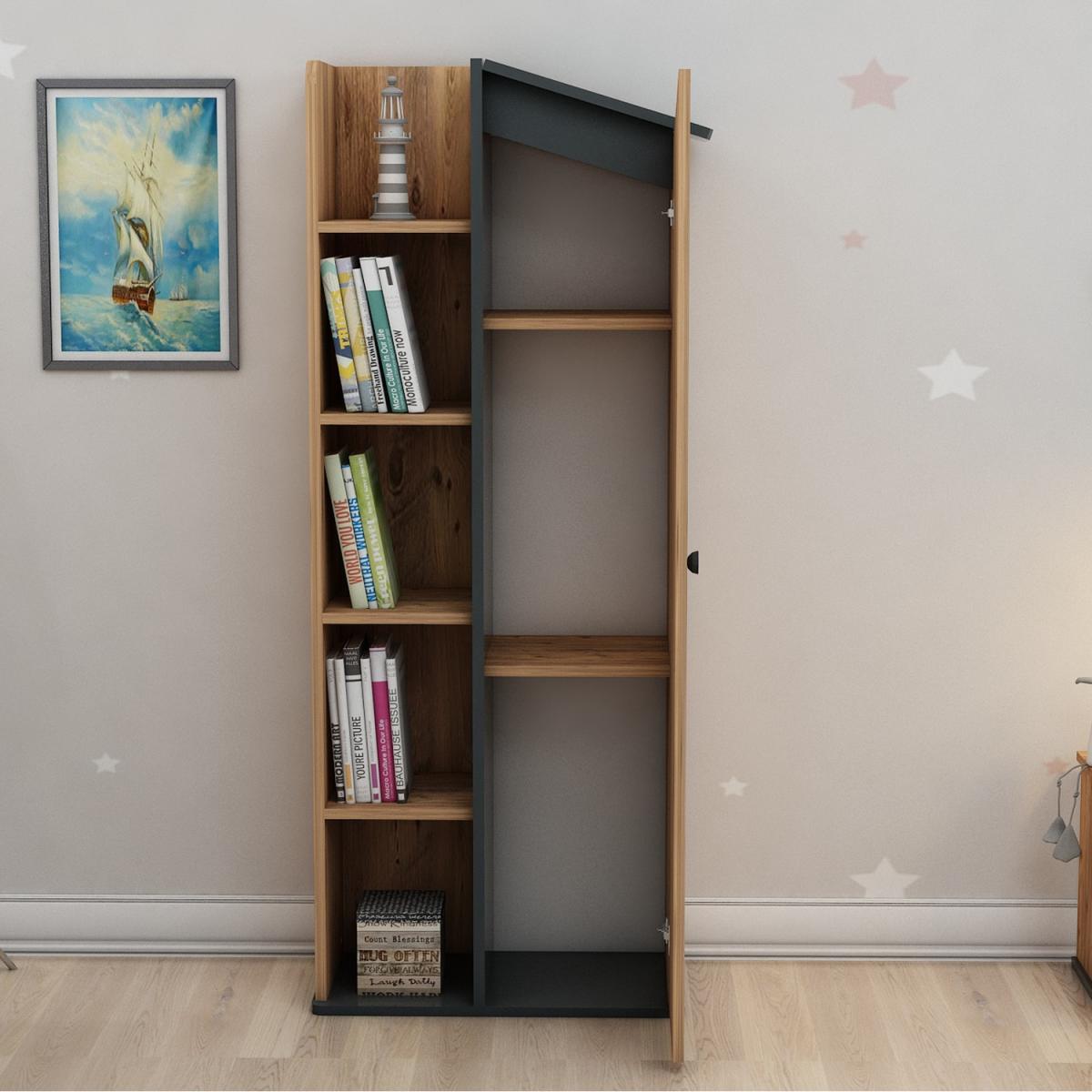 MATERIAL The bookcase is made of an 18 mm thick quality melamine-coated particleboard. The manufactured wood surface is water-resistant to some extent and the edges are banded with PVC edge banding tape. First-class assemblyinstallation hardware and accessories are used. Our products are produced from certified quality raw materials that do not contain carcinogenic substances and comply with European Union health norms. CLEANING You can clean your furniture with a dry cloth. Avoid prolonged contact of your product with moisture and water. ASSEMBLY The product will be delivered to the customer in the original package as disassembled. It is designed to be assembled by the customer using a power drill and screwdriver. Assembly instructions and installation hardware are included in the package. For fast and error-free installation, product parts are numbered with stickers in accordance with the assembly guide.