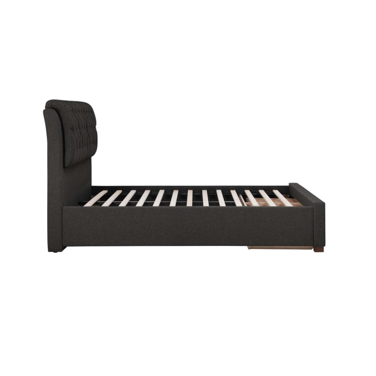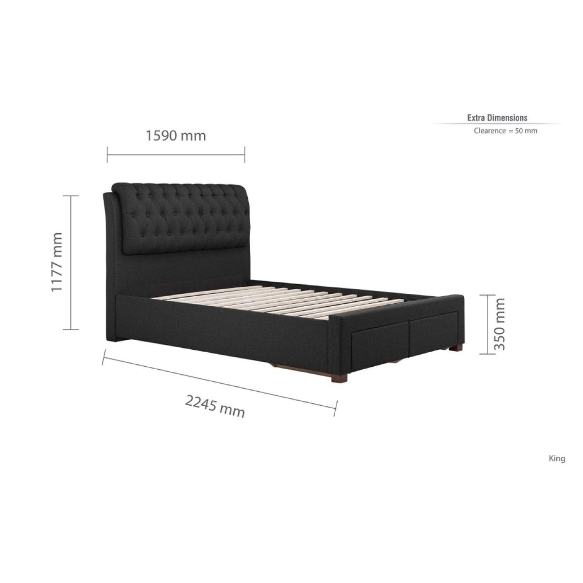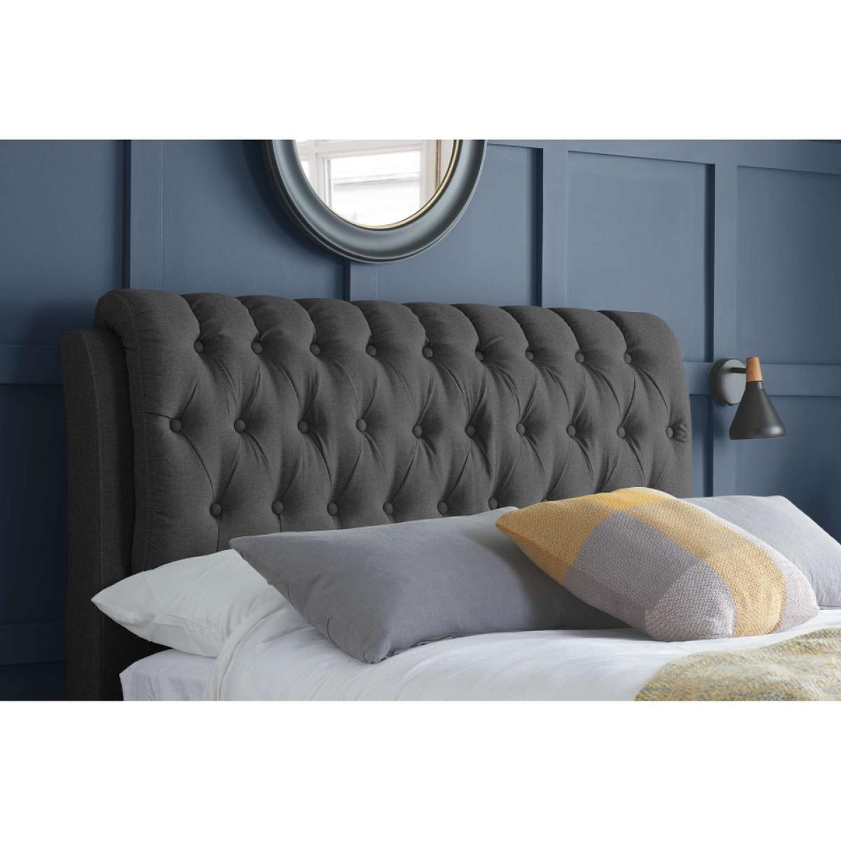 A delightfully upholstered charcoal king bed, that is really brought to life by a detailed buttoned headboard design, the Valentino not only looks great, but offers practicality with two spacious drawers built into the end of the bed.