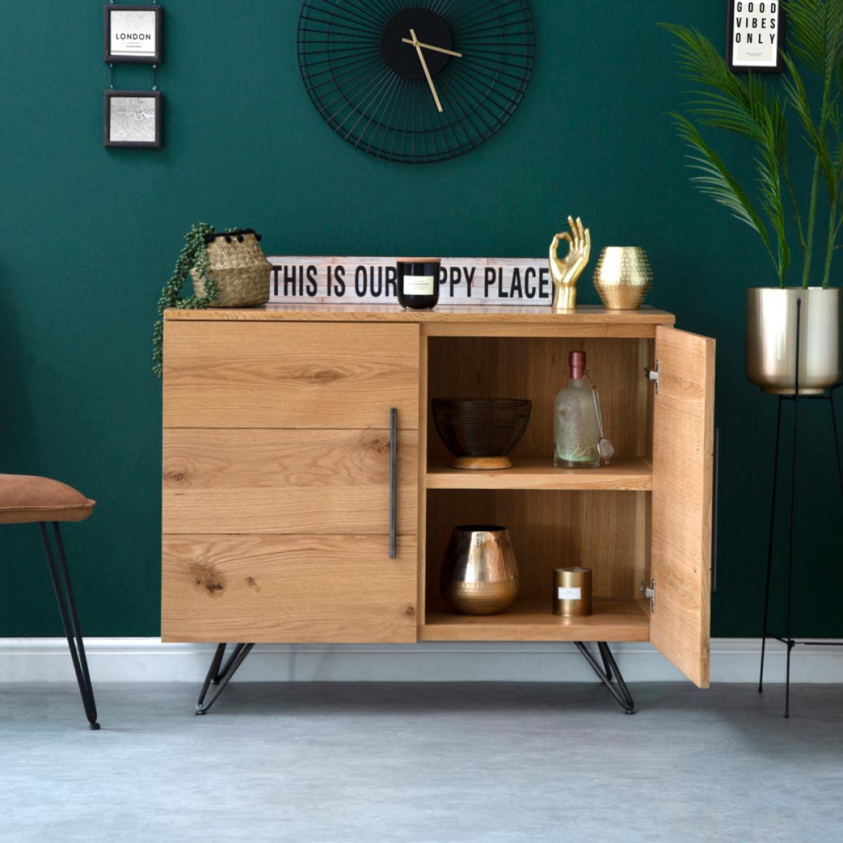 Getting stylish with your decor and furnishing is as easy as clicking a button thanks to our Valentino Industrial Oak Small 2 Door Sideboard and 2-man delivery team. The unique combination of golden oak, metal handles and hair pin legs combine to create the perfect take on the on-trend industrial look. Put them all together and you have a Side Unit that's sure to stand the test of time, no matter which style you decide to create around it. All that's left is to shop the rest of the range and decide how you're going to match to your home's latest addition.