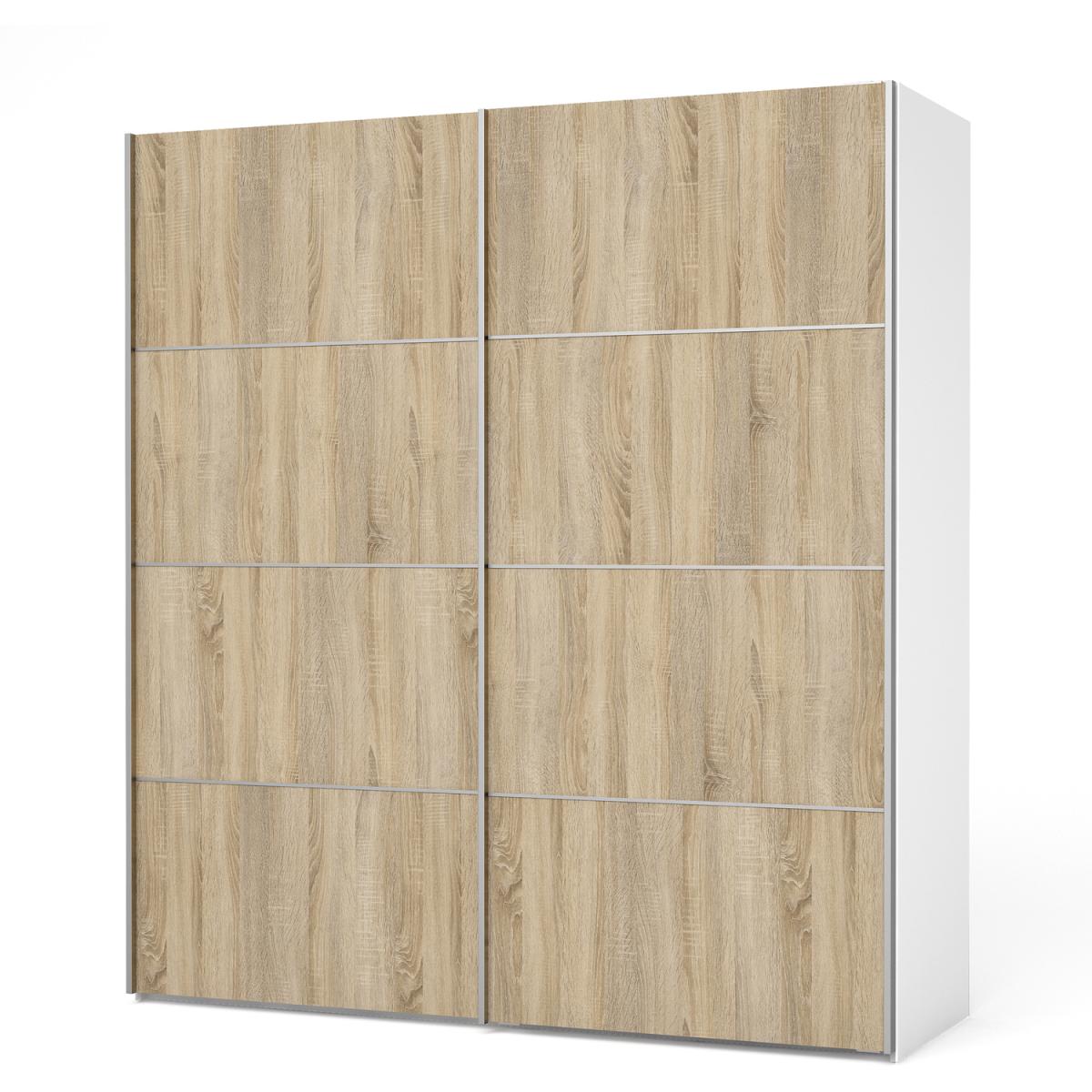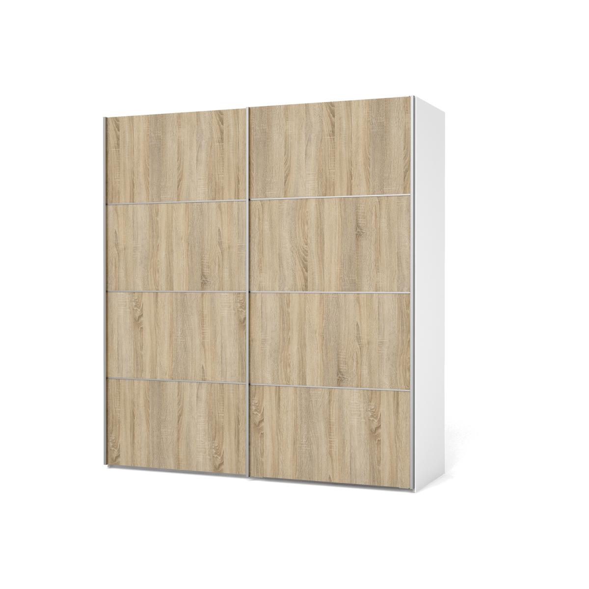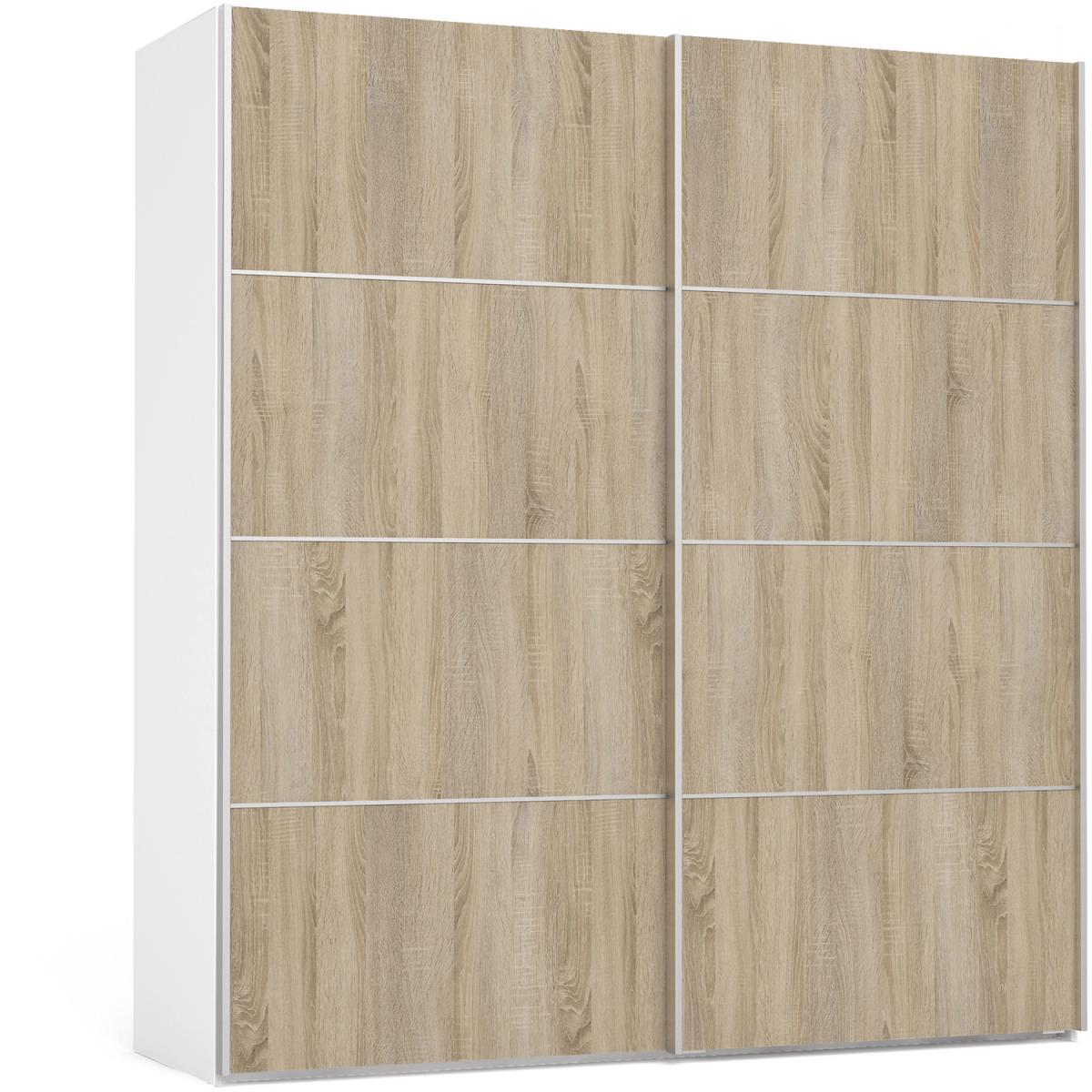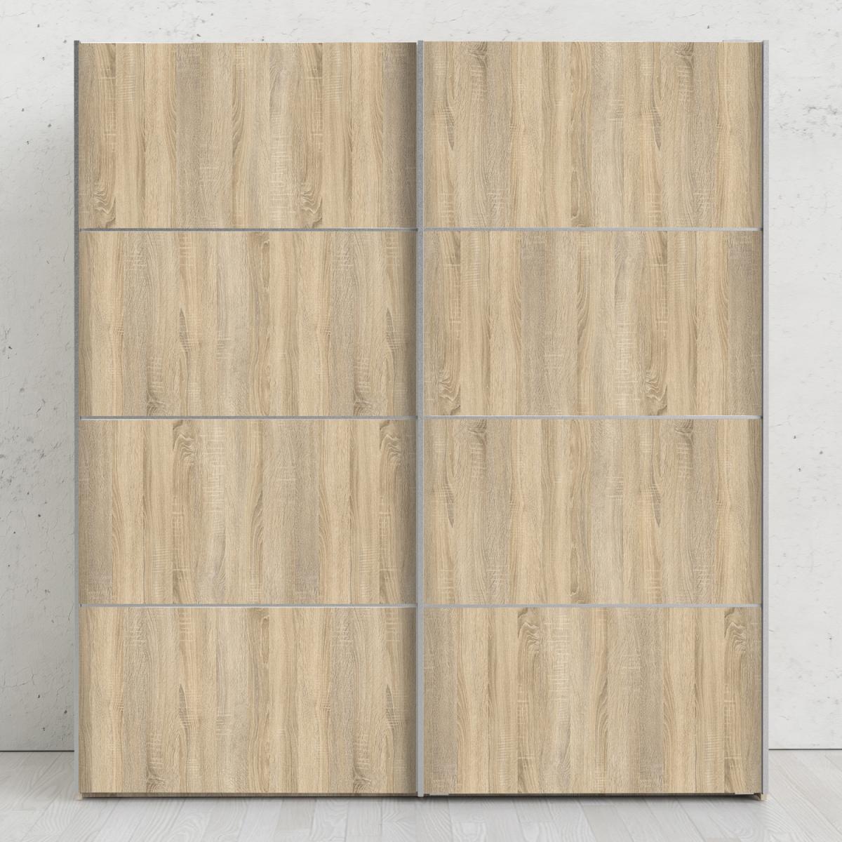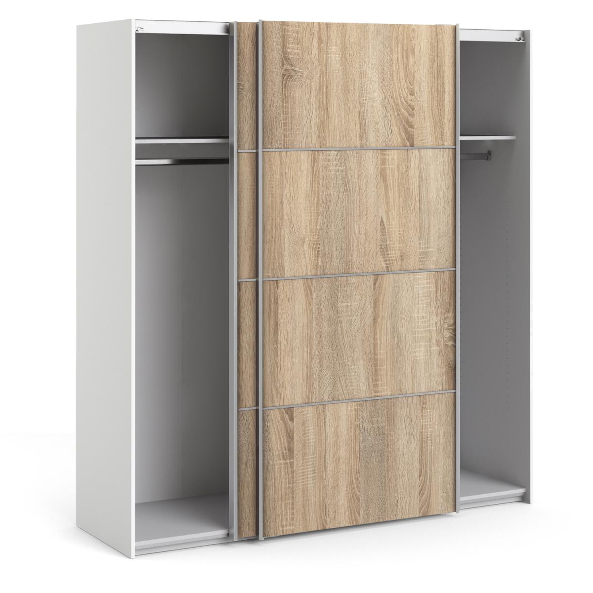 Valentino Sliding Wardrobe 180Cm with White Back and 2 Shelves - Oak/White