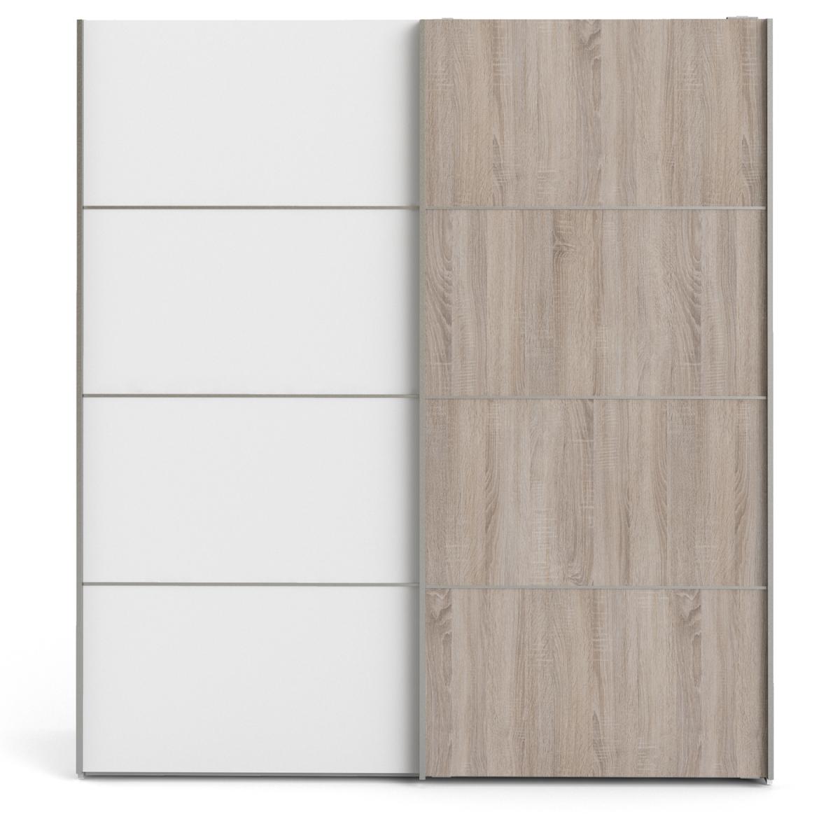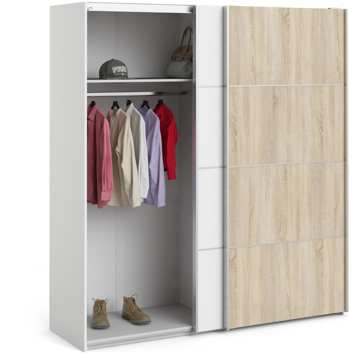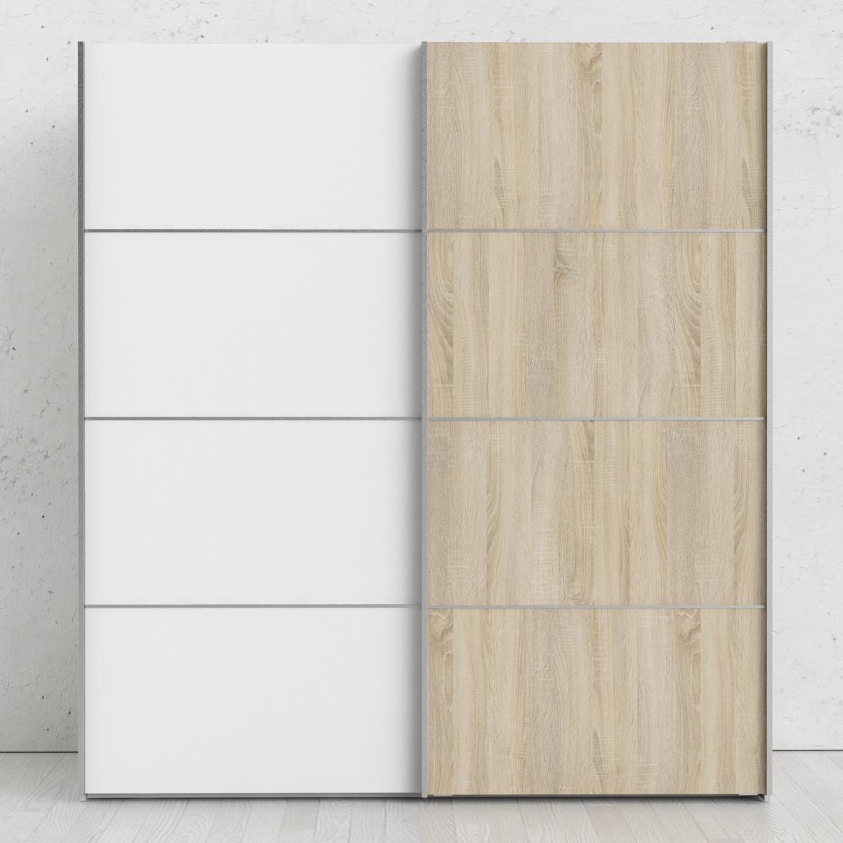 Valentino Sliding Wardrobe 180Cm With White Back and Door with 2 Shelves - Oak