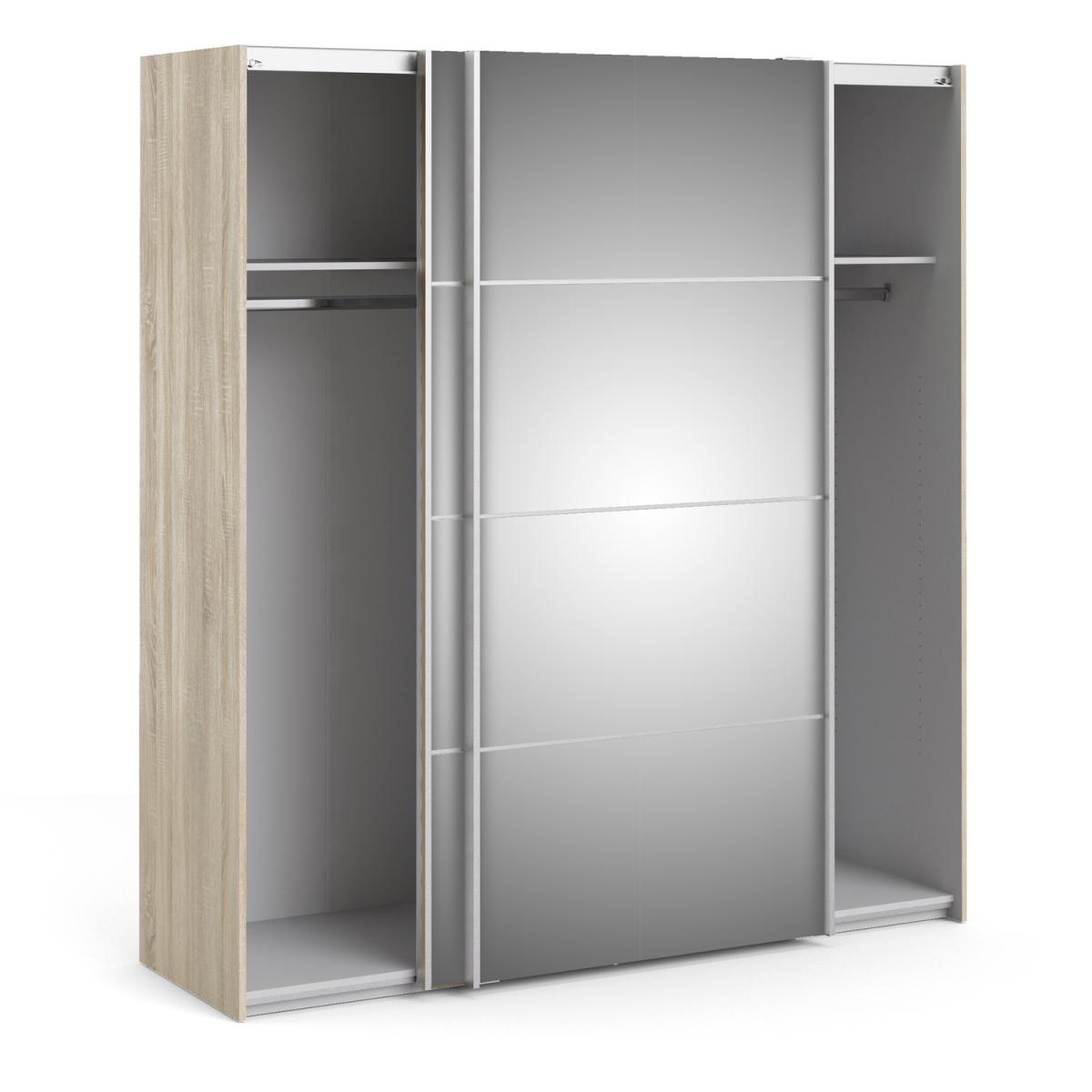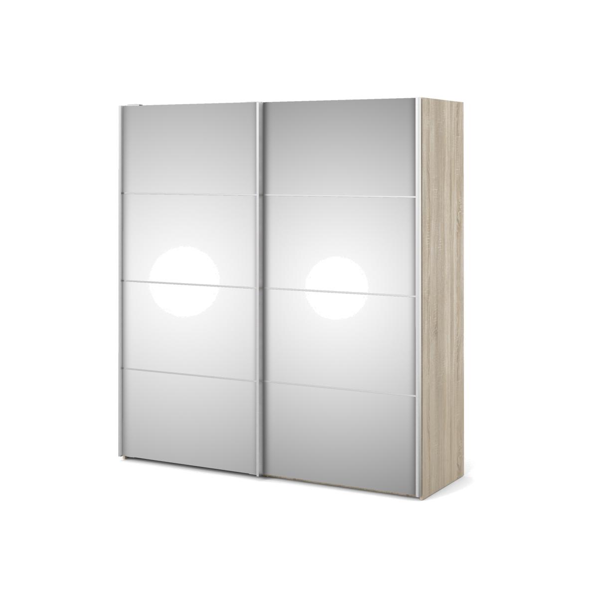 Valentino Sliding Wardrobe with Mirror Doors and 2 Shelves - Oak