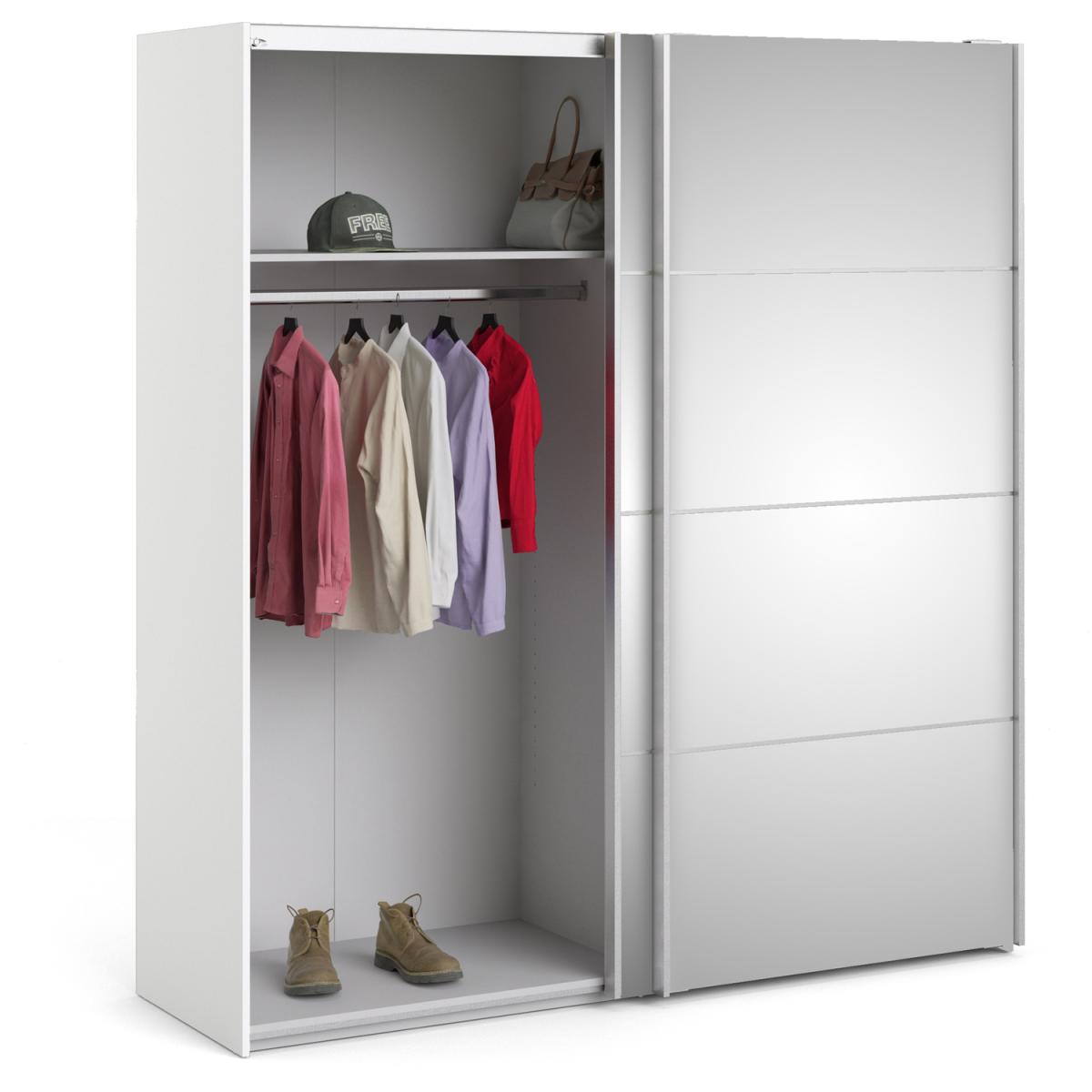 Valentino Sliding Wardrobe with Mirror Doors and 2 Shelves - White