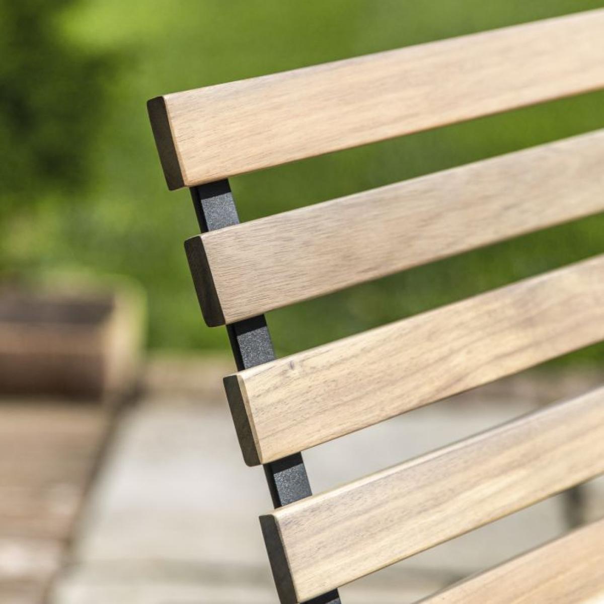 Add a modern industrial look to your outdoor space with this bold dining set which includes four chairs and a table, all of which fold for easy storage. They are crafted from acacia wood with a natural finish and contrasting industrial style dark powder coated metal, making a style statement, perfect for a modern urban garden.