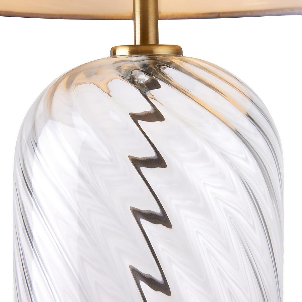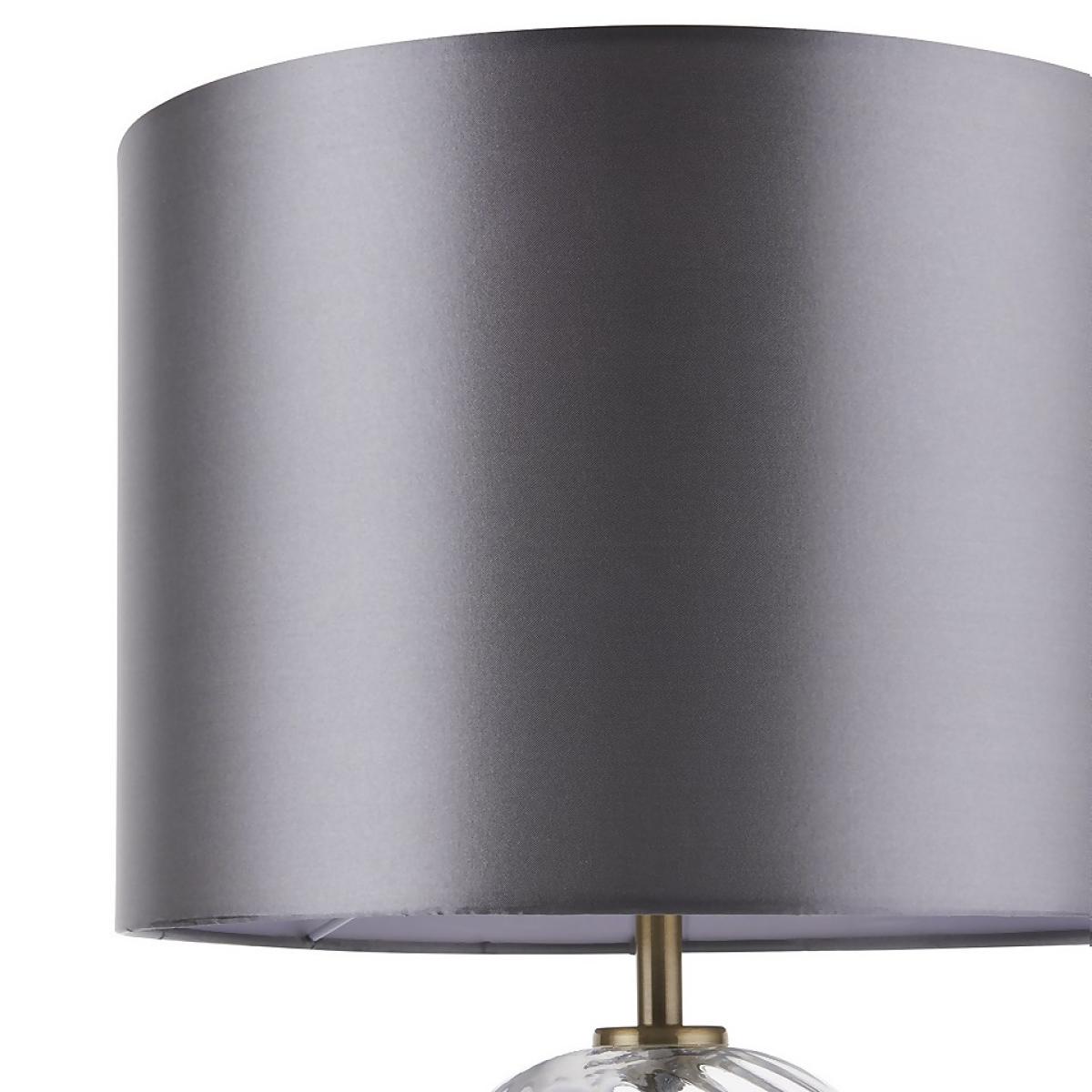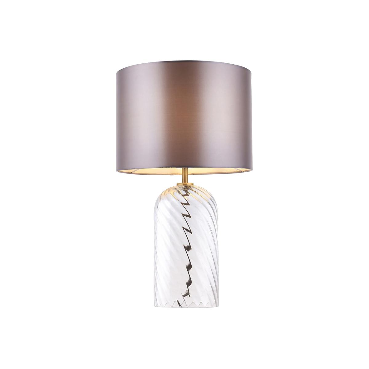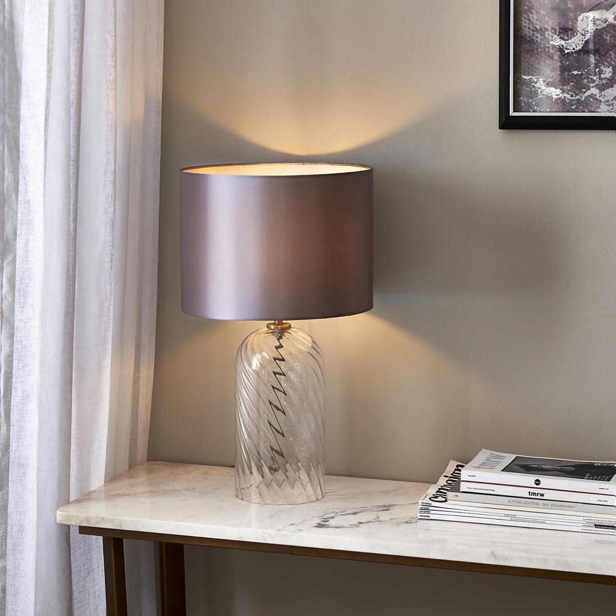 The Valetta table lamp, with its swirled glass base and timeless silver satin shade provides the perfect light diffusion for your space and will be a beautiful addition to any living area.