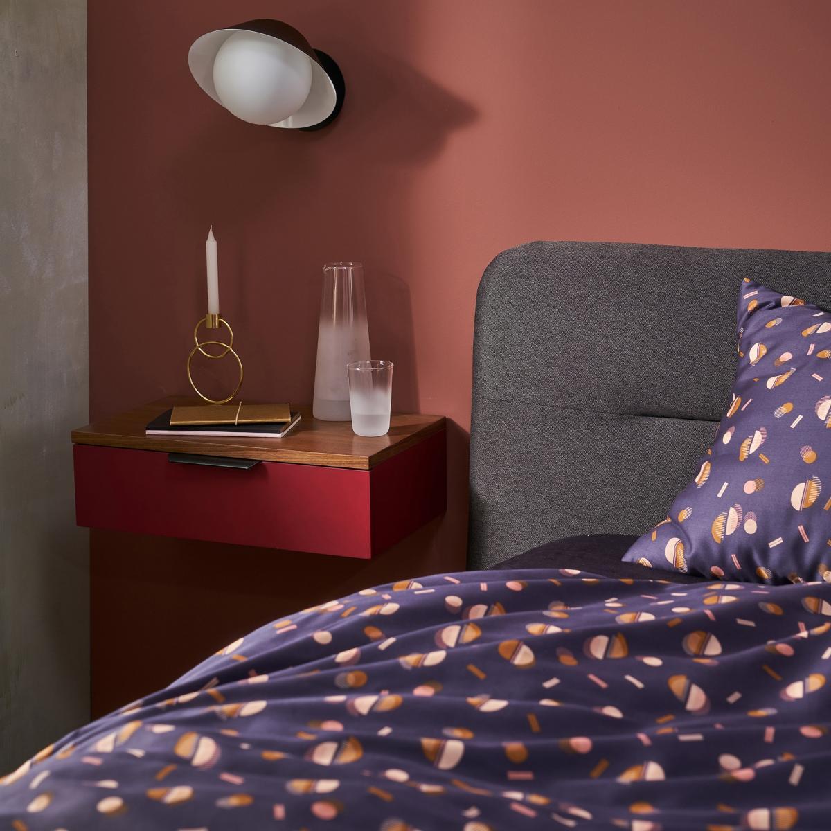 The Valga wall shelf with drawer. With a clean and minimalist style, this bedside table brings a colourful decorative touch to your bedroom.